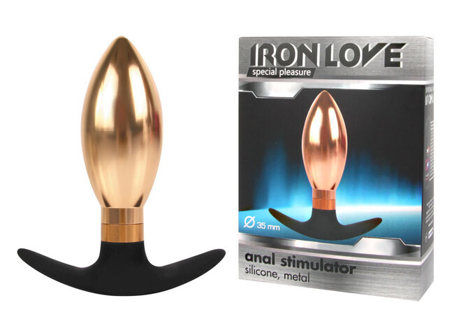 Анальный стимулятор металлический "IRON LOVE", длина 10,4см, диаметр 3,3см, золотой/черный