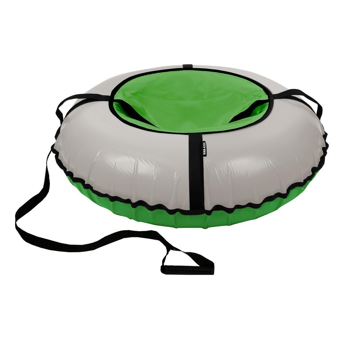 Использовать тюбинг просто: накачайте его с помощью автомобильного насоса, и он готов к использованию. Эффективный дизайн позволяет развивать высокую скорость, при этом кочки и неровности дороги не ощущаются благодаря мягкой амортизации. Боковые ручки обеспечивают дополнительную безопасность во время катания и удобство при переноске.