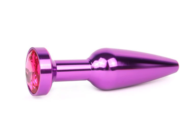 Анальная втулка удлиненная коническая, металл, фиолетовый, с малиновым кристаллом, 11.3 см