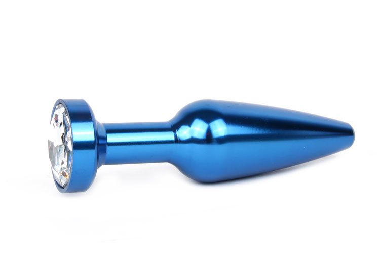 Удлиненная коническая форма этой металлической втулки создана для плавного и контролируемого введения, обеспечивая комфорт на каждом этапе использования. Гладкая глянцевая поверхность синего цвета не только выглядит эстетично, но и гарантирует максимальное удобство. Вставка из прозрачного ограненного кристалла на плоском основании добавляет изысканный штрих, превращая интимный аксессуар в настоящее украшение.