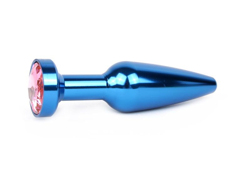 Эта металлическая втулка создана для тех, кто ценит не только эстетику, но и комфорт во время интимных игр. Её удлинённая коническая форма обеспечивает плавное и постепенное проникновение, а гладкая полированная поверхность гарантирует приятные тактильные ощущения. Яркий синий цвет в сочетании с розовым кристаллом у основания делает аксессуар стильным и привлекательным.
