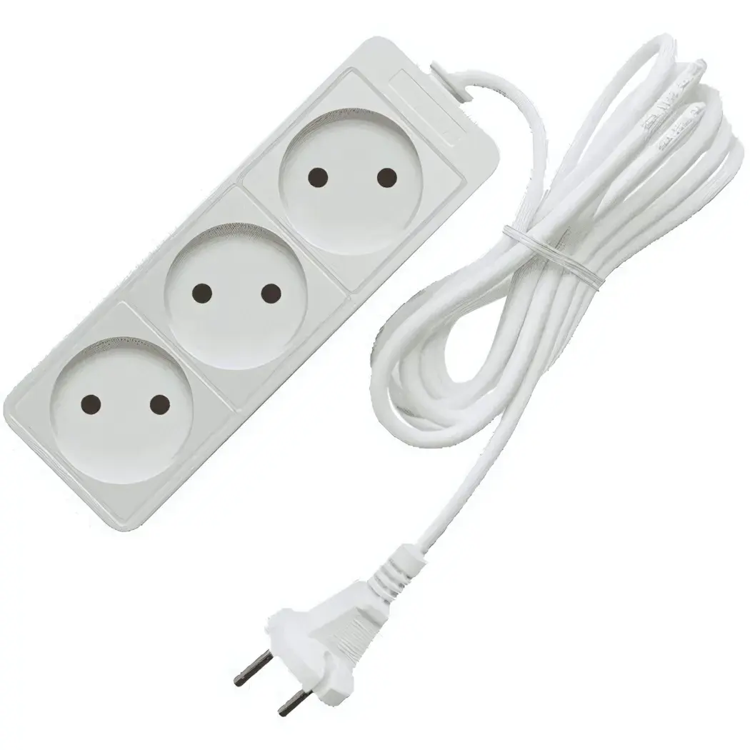 Белый цвет корпуса легко впишется в любой интерьер, а прочный пластик с металлическими элементами гарантирует долговечность конструкции. Три круглых гнезда стандартного размера принимают большинство типов вилок без необходимости использования адаптеров.