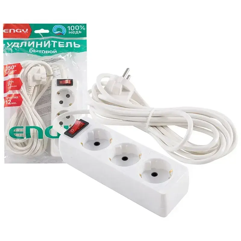 Удлинитель Engy Гранд с выключателем — идеальное решение для организации электропитания дома или в офисе. Прочный кабель длиной 5 метров обеспечивает мобильность подключения, а 4 розетки позволяют одновременно использовать несколько устройств.
