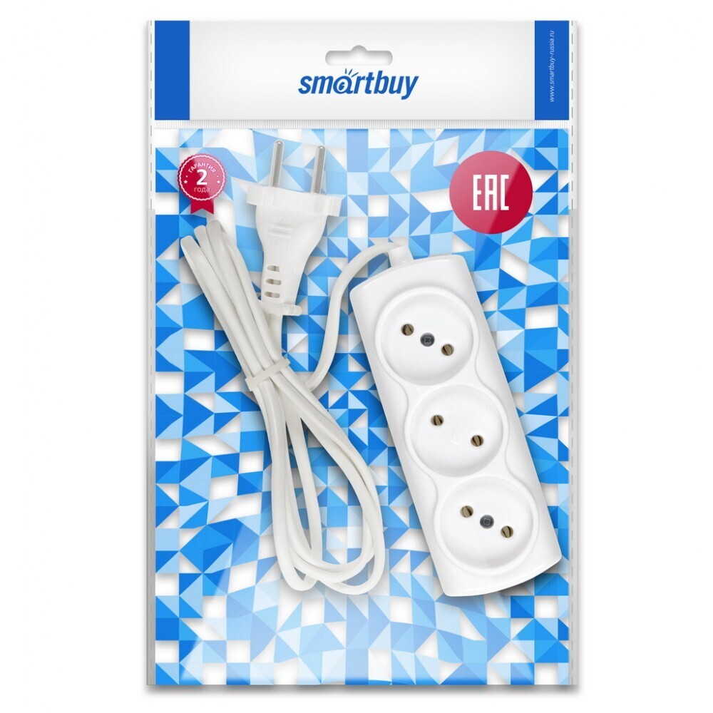 Удлинитель Smartbuy 3 розетки, 1.5 м, 6А/1350Вт, белый ABS-пластик, безопасное подключение