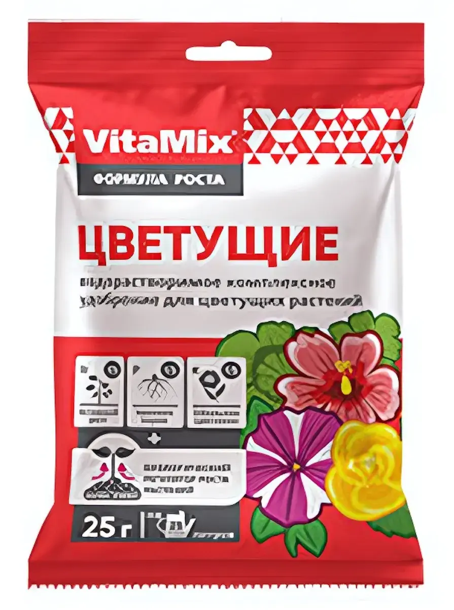 Обеспечьте своим цветущим растениям здоровье и красоту с помощью удобрения VitaMix. Это идеальное решение для тех, кто хочет добиться пышного цветения и яркой окраски цветов. Удобрение мгновенно восполняет дефицит питательных веществ, что позволяет вашим растениям радовать глаз своим великолепием.