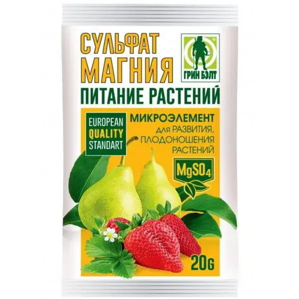 Упаковка содержит 20 граммов удобрения, что позволяет вам легко дозировать необходимое количество для обработки растений. Убедитесь, что вы используете свежеприготовленный раствор для достижения максимального эффекта. «Сульфат магния» — это надежный выбор для каждого садовода, который стремится к качественному уходу за своими растениями.