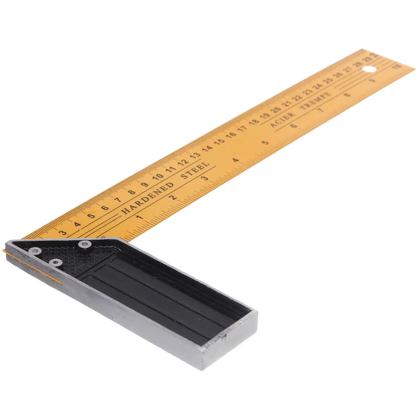 Угольник изготовлен из углеродной стали, что гарантирует его долговечность и надежность. Металлическая конструкция обеспечивает прочность, а алюминиевая ручка добавляет удобства при использовании. Вы сможете сэкономить время на разметке благодаря четким делениям и углам, что делает этот инструмент практичным выбором для любого мастера.