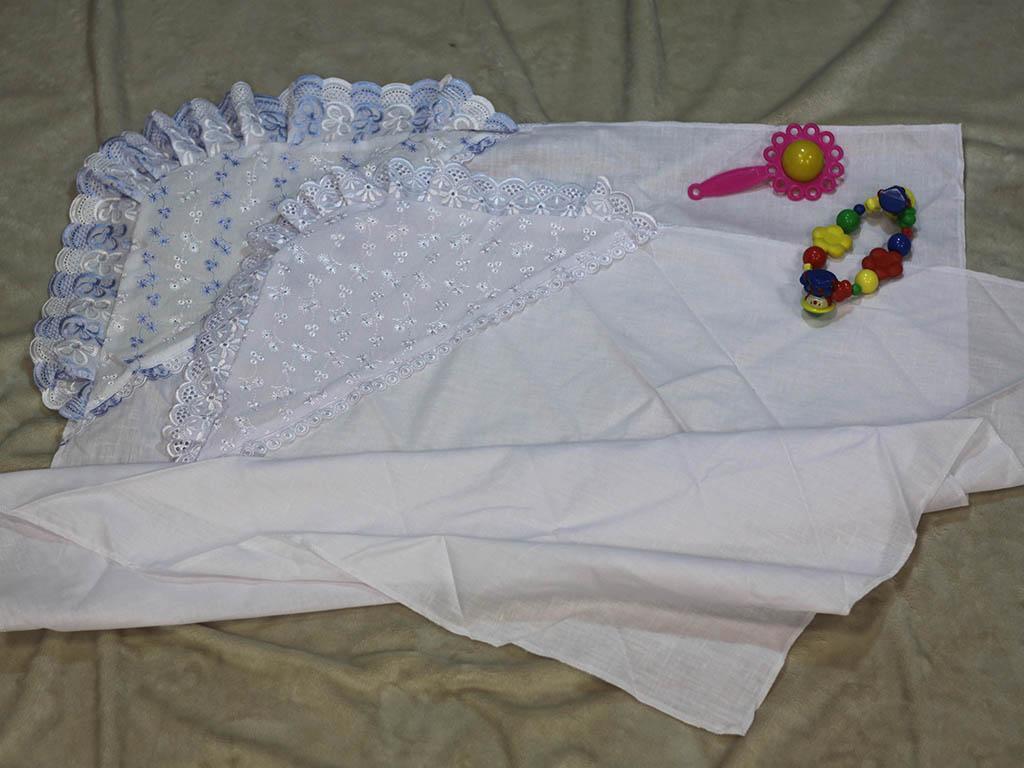Уголок на выписку "Солнечный миф", кружево и бязь, белый с голубым