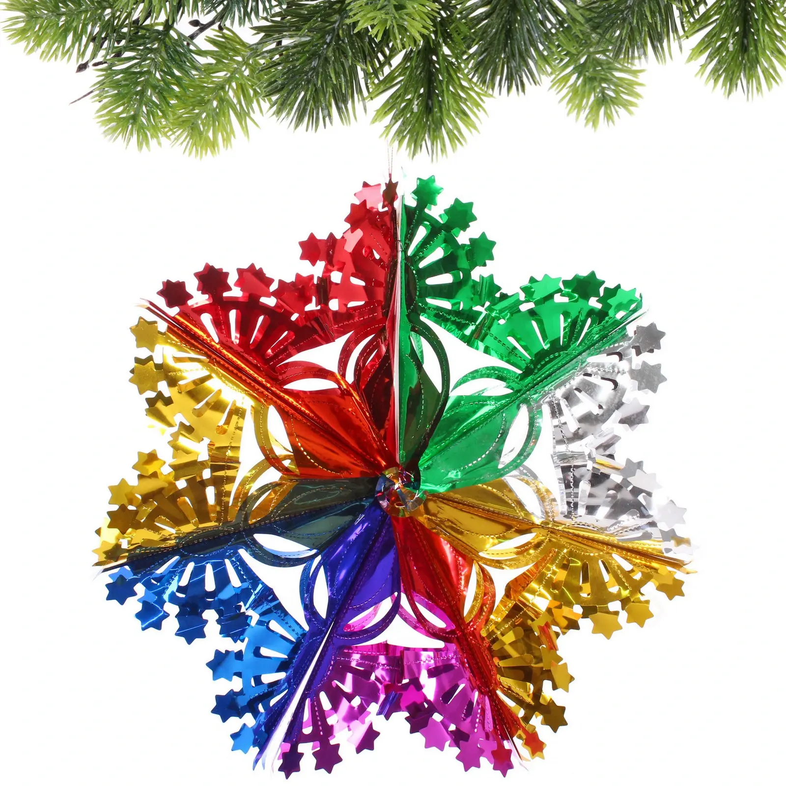 Размеры: диаметр 30 см. Материал: ПВХ. Цвета: красный, зеленый, желтый, синий, фиолетовый и серебристый. «Сказочная снежинка» станет отличным дополнением к вашему новогоднему декору и подарит вам и вашим близким незабываемые моменты радости и веселья.