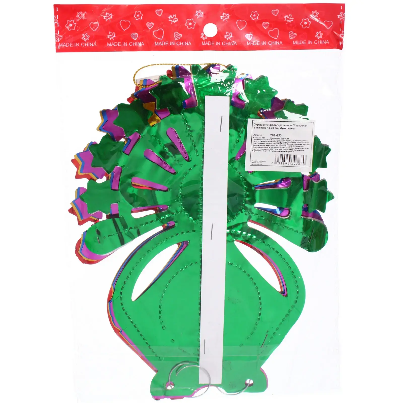 Фольгированное украшение «Сказочная снежинка» диаметром 30 см — это идеальный элемент для создания праздничного настроения в вашем доме. Яркие цвета и блестящий материал делают эту снежинку настоящим украшением для новогодних праздников. Она станет отличным акцентом в интерьере, добавляя нотки волшебства и радости.