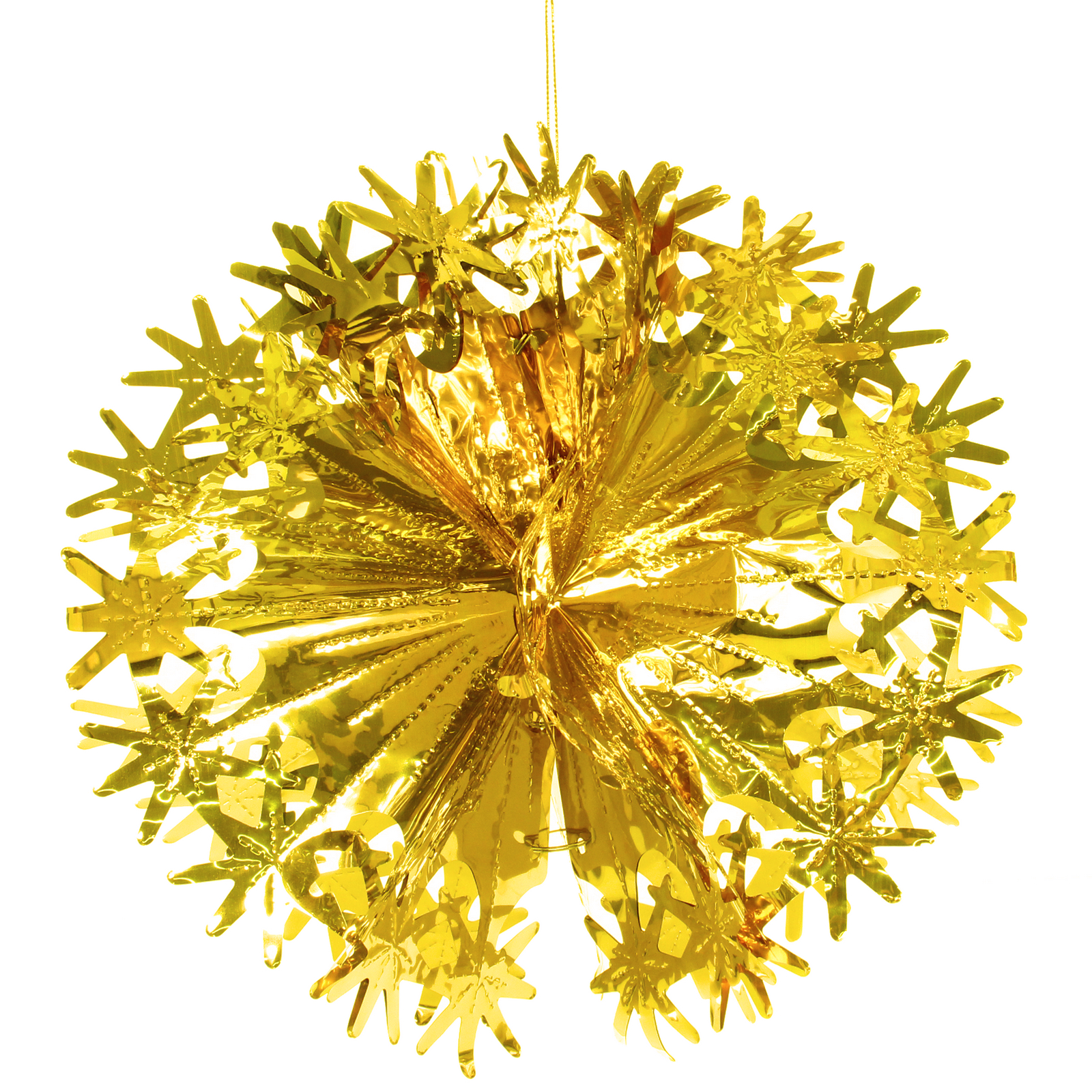 Фольгированное украшение «Волшебный шар» диаметром 30 см в золотом цвете — это идеальный элемент для создания праздничного настроения в вашем доме. Его блестящая поверхность и уникальный дизайн с элементами, напоминающими снежинки, добавят изысканности и стиля в любое новогоднее оформление.