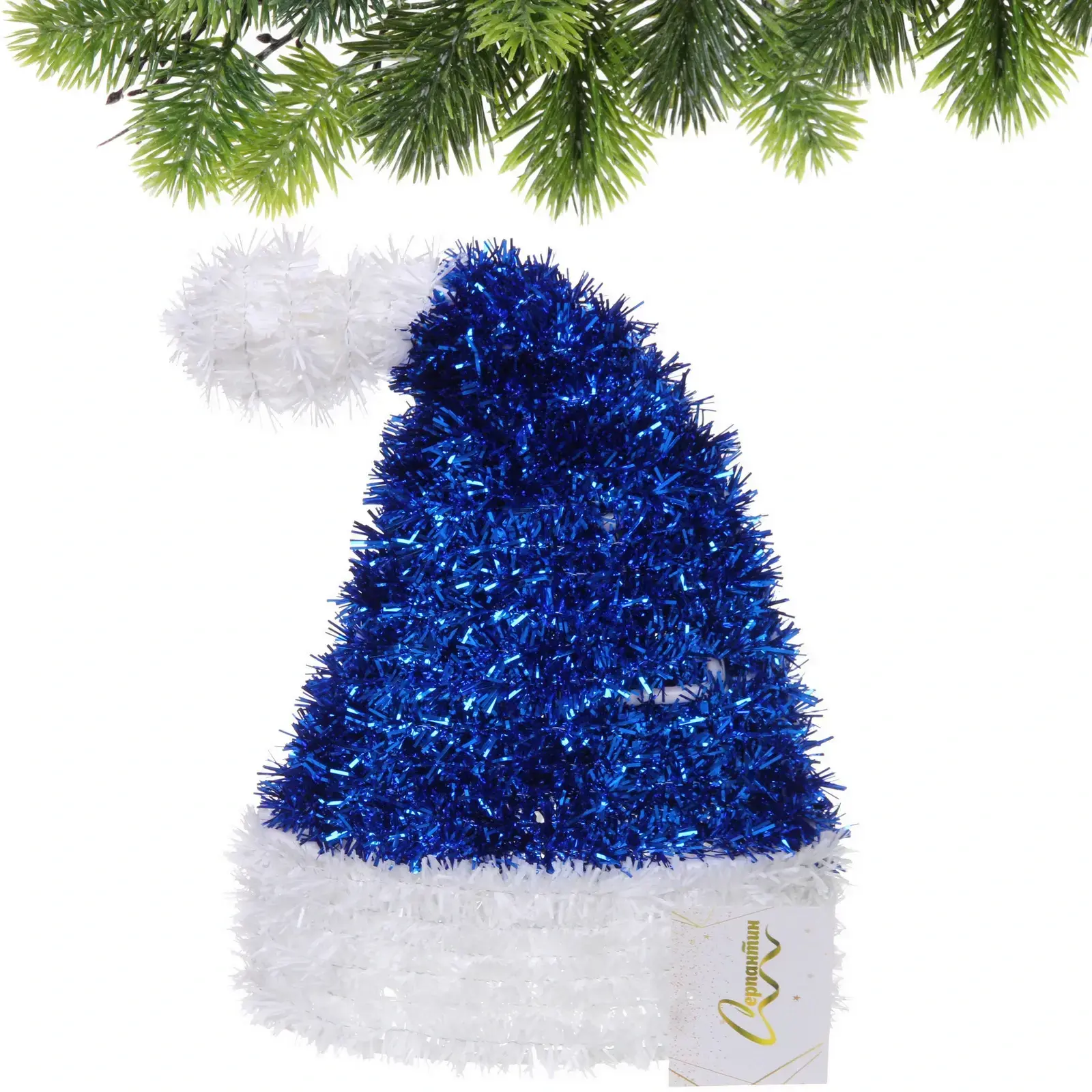 Размеры украшения составляют 22 см в высоту, 15 см в ширину и 7 см в глубину. Шапочка выполнена в голубом цвете с белыми блестящими волокнами, что делает её ярким акцентом в любом интерьере. Не упустите возможность добавить это замечательное украшение в ваш праздничный декор и сделать ваши праздники незабываемыми!