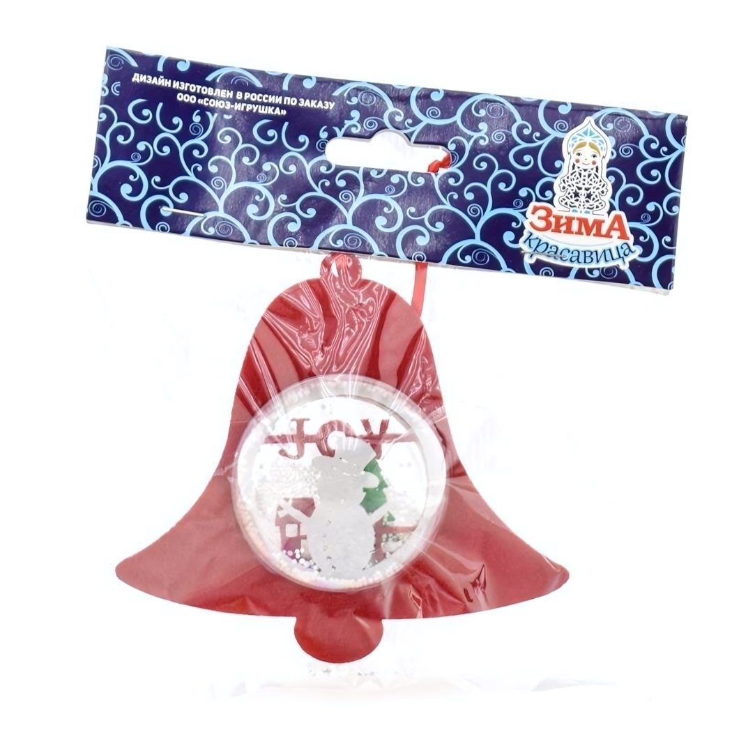 Колокольчик-елочная игрушка с прозрачным шаром 12 см, красный, внутри фигурки снеговика и ёлки, удобно вешается на ветку