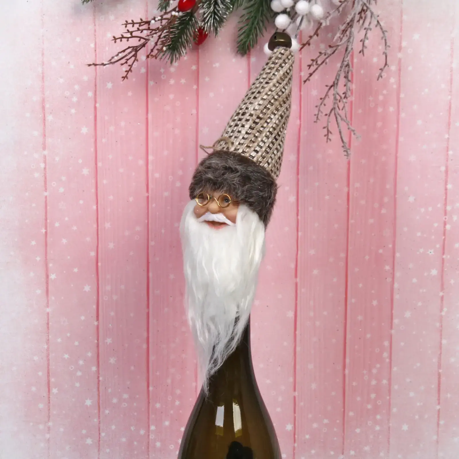 Украшение на бутылку 'Дед Мороз', 25см, текстиль/пластик, серый колпак