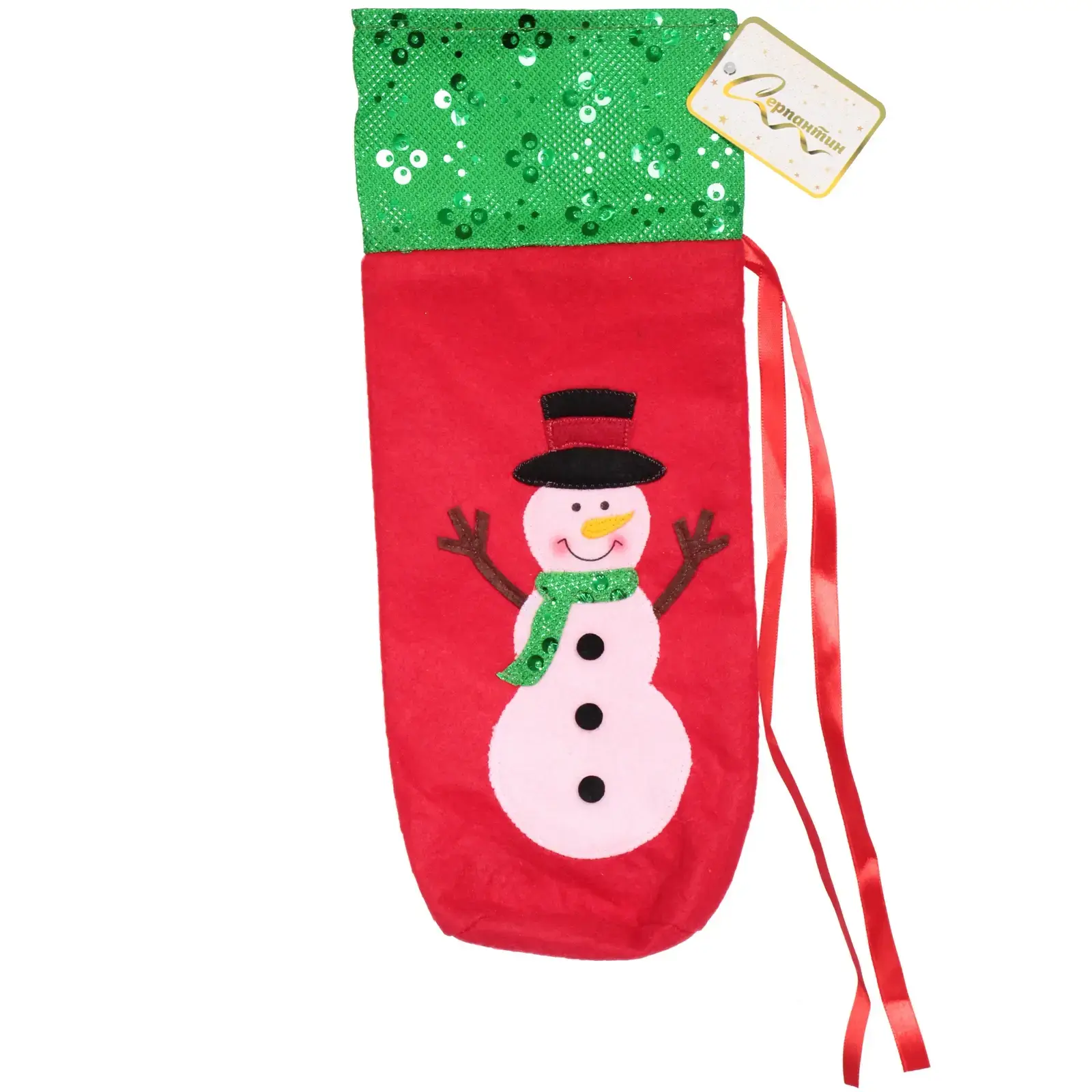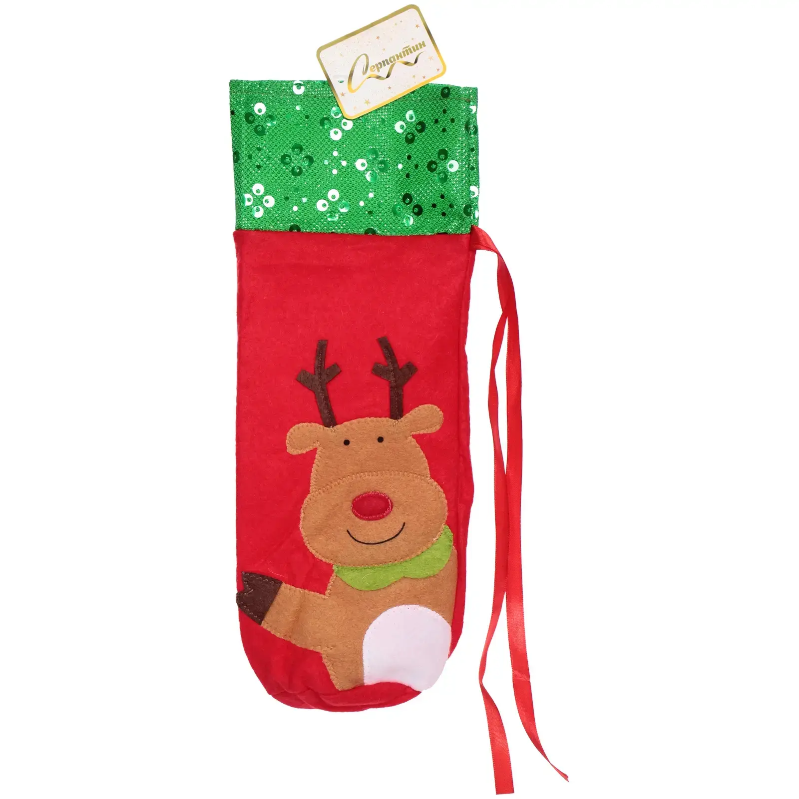 Размеры украшения составляют 13х32 см, что делает его универсальным для большинства бутылок. Текстильный материал обеспечивает мягкость и приятный внешний вид, а также легкость в уходе. Украшение выполнено в новогоднем стиле, что делает его идеальным для создания праздничной атмосферы.