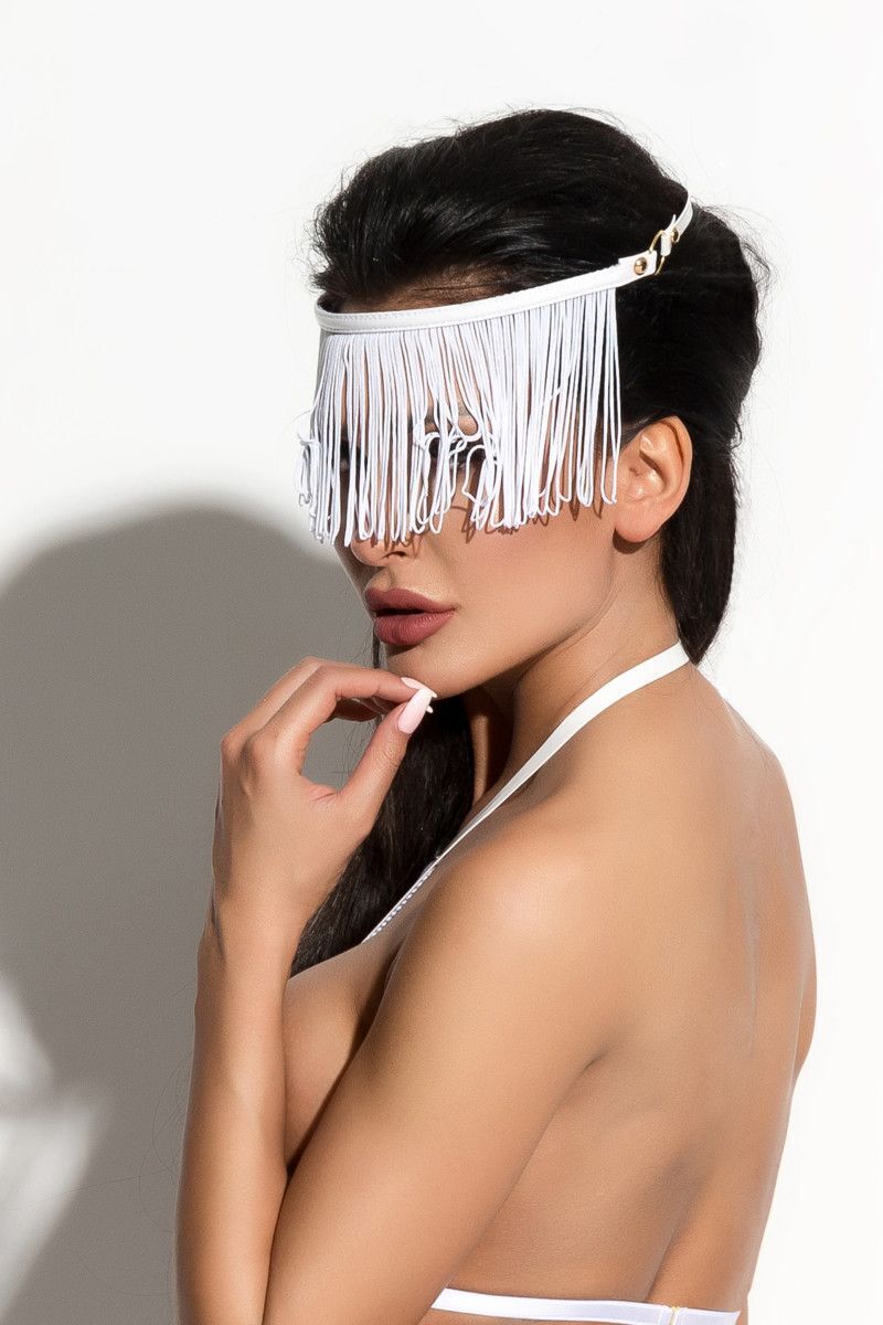 Создайте незабываемый образ с помощью этого модного аксессуара, который идеально подходит как для создания стильного имиджа, так и для дополнения сексуального образа. Украшение на голову выполнено в белом цвете и украшено длинной бахромой, которая ниспадает на глаза, добавляя таинственности вашему образу.
