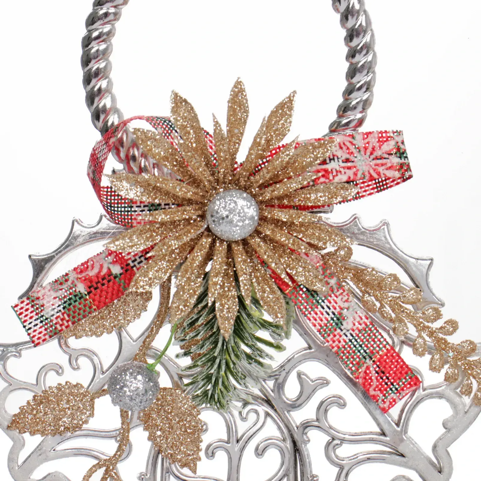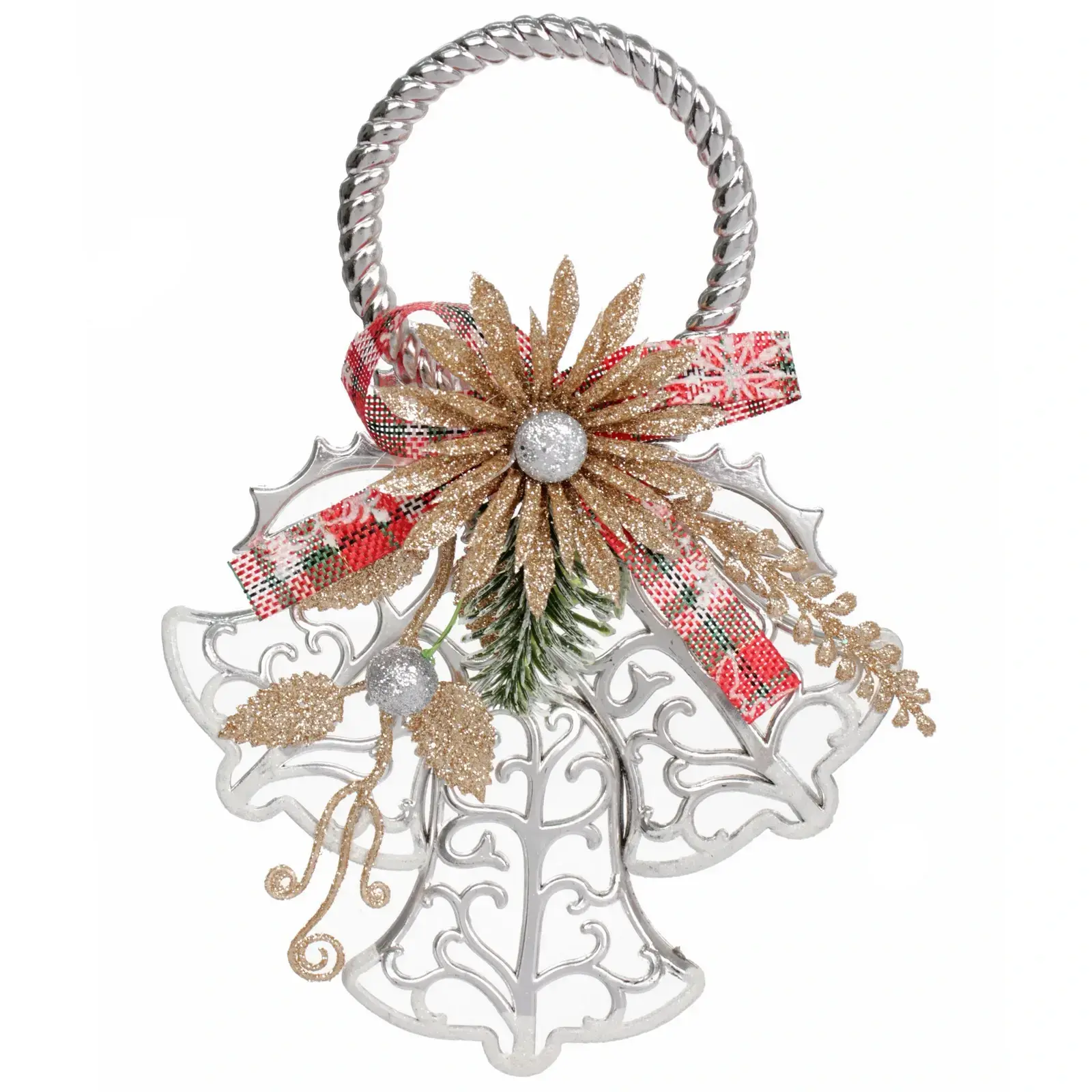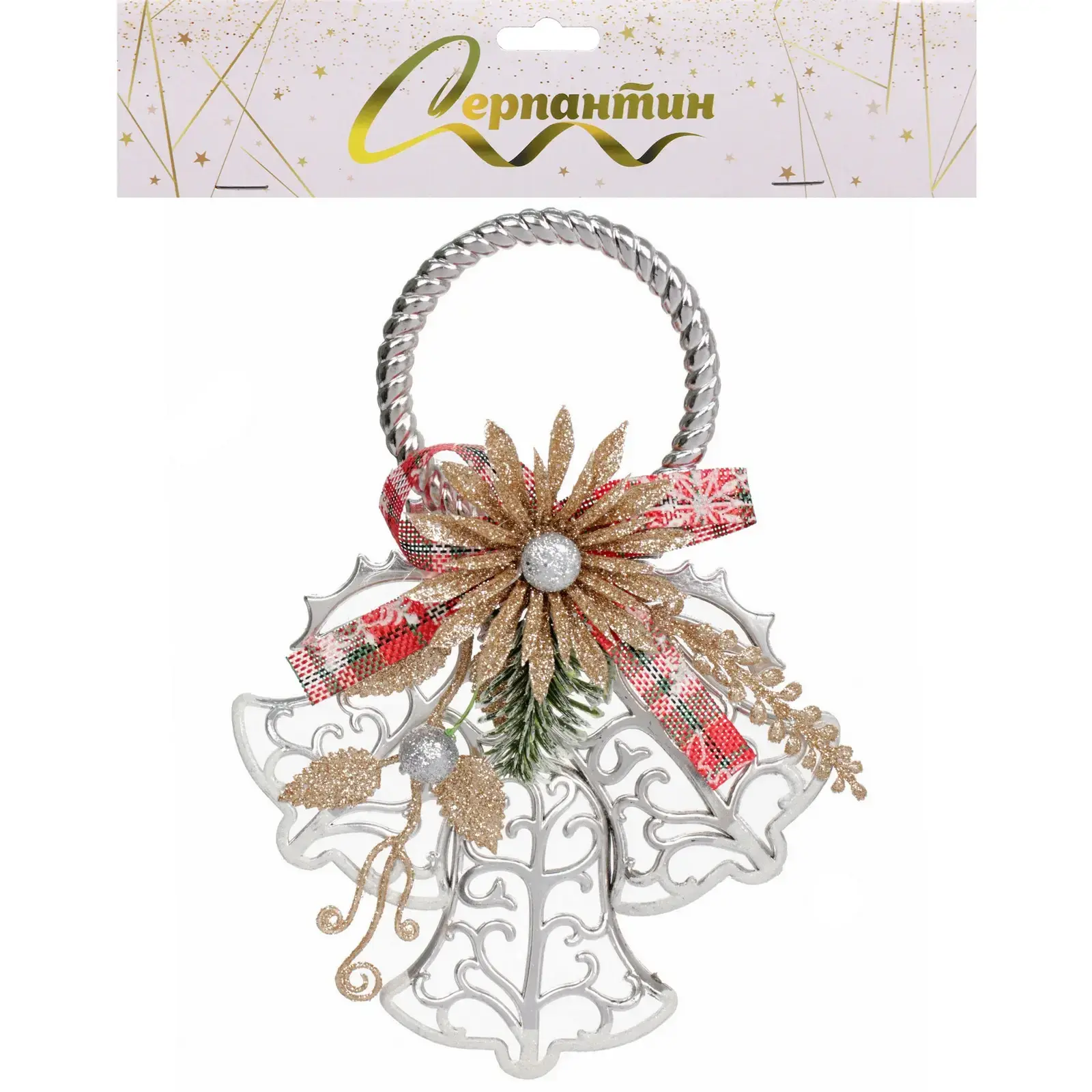 Выбирая «Ажурные колокольчики», вы получаете не просто декор, а элемент, который привнесет в ваш дом атмосферу праздника. Серебристый цвет с золотыми деталями и красной лентой в клетку делает это украшение стильным и современным. Объемная форма и детализированные узоры привлекают внимание и создают ощущение праздника.