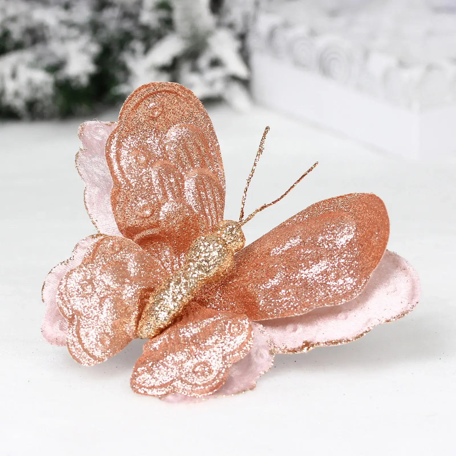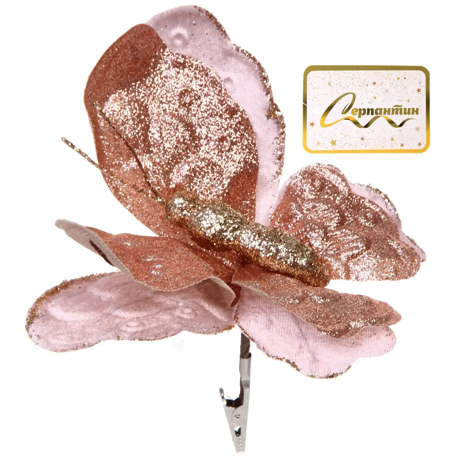 Новогоднее украшение “Бабочка” станет изысканным акцентом в создании праздничной атмосферы. Её мерцающие крылья с эффектом розового золота добавят ноту элегантности и волшебства.
