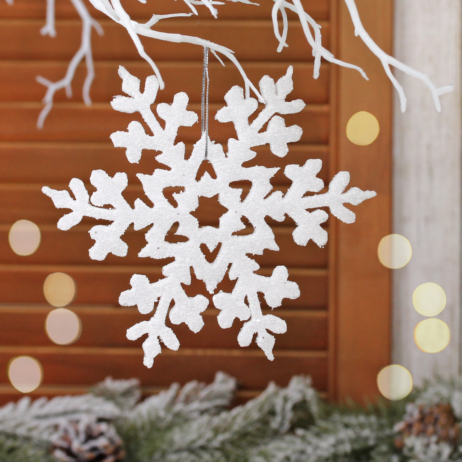 Украшение изготовлено из качественного пластика, который сохранит свой первоначальный вид долгие годы. Белый цвет делает его универсальным элементом декора, подходящим как для традиционных, так и для современных интерьеров.