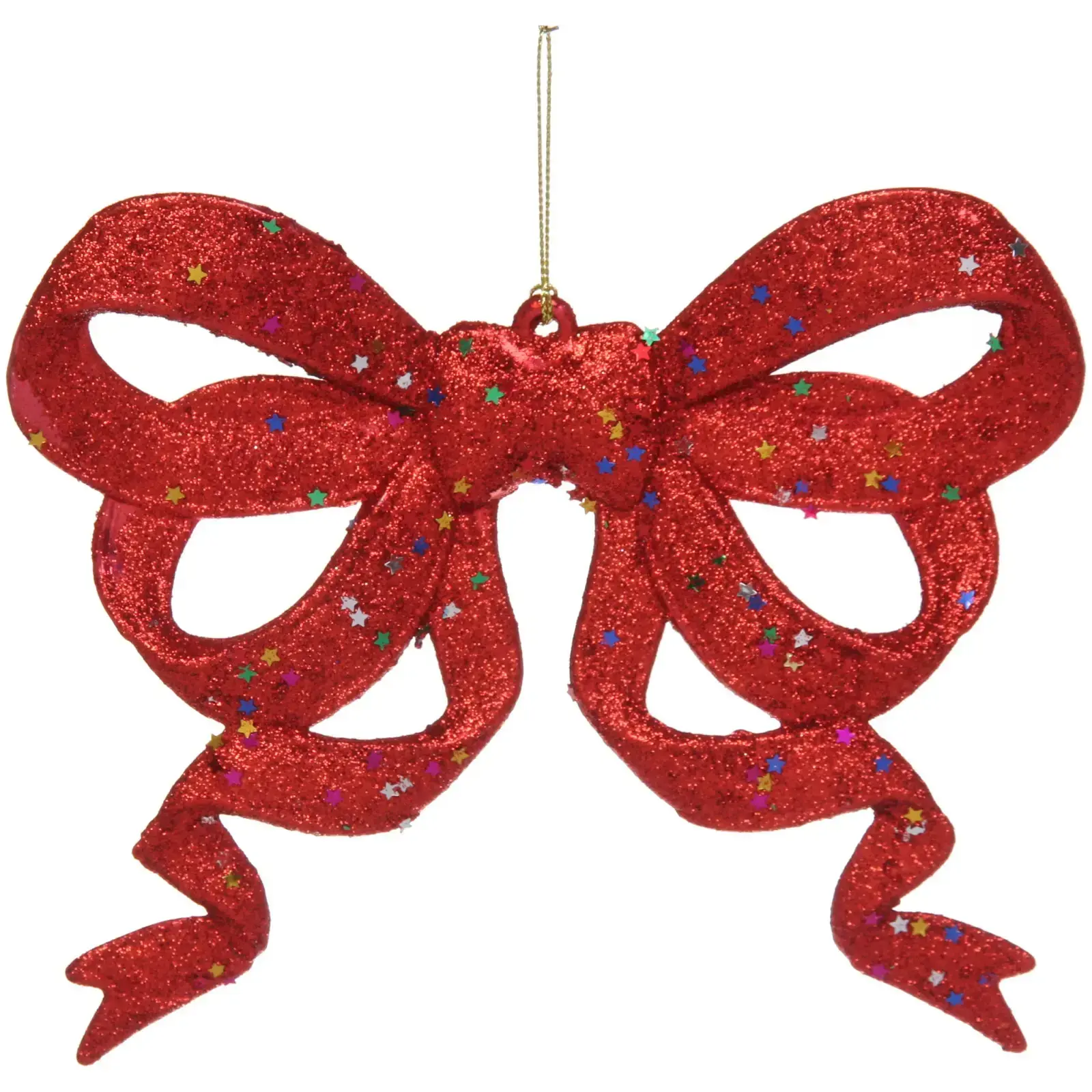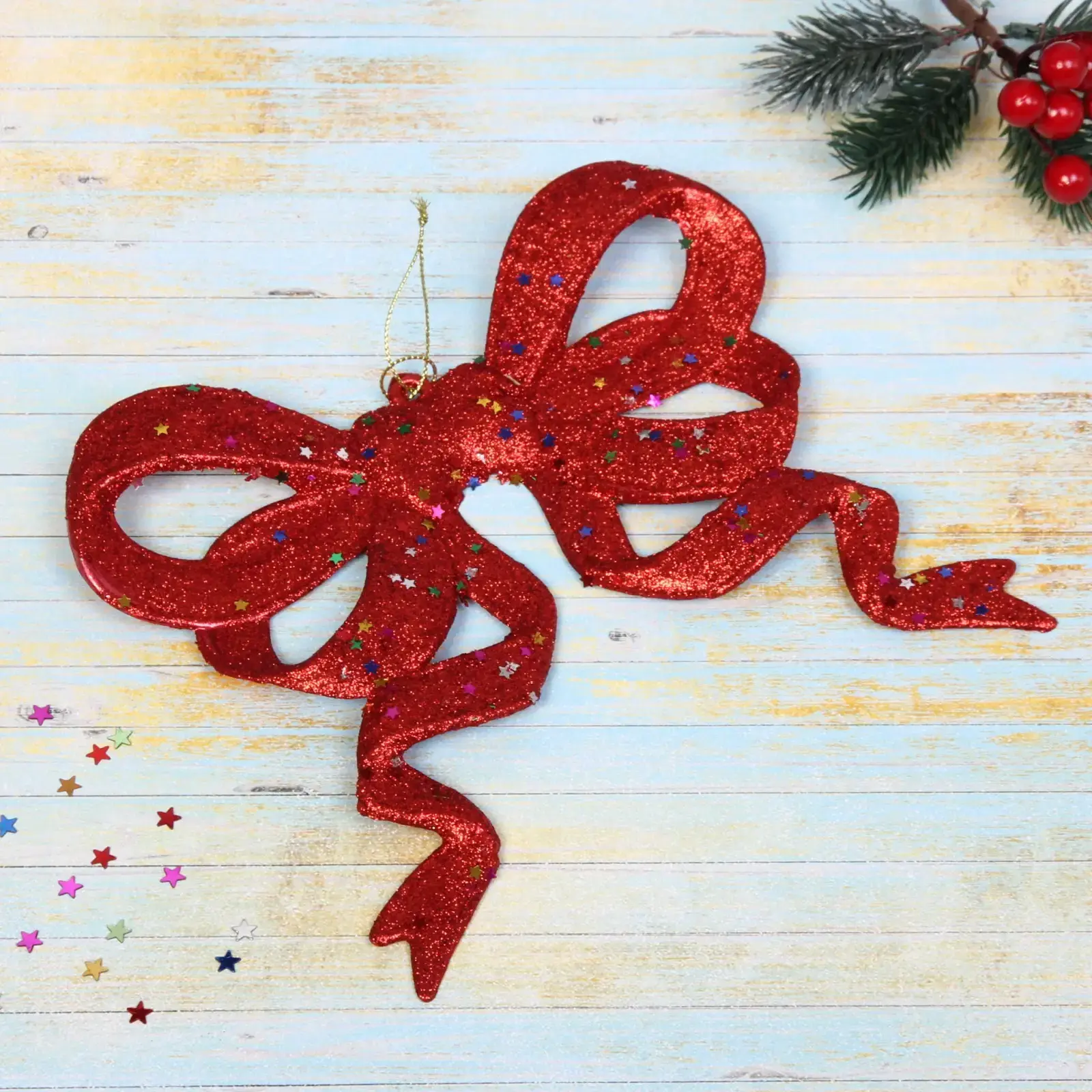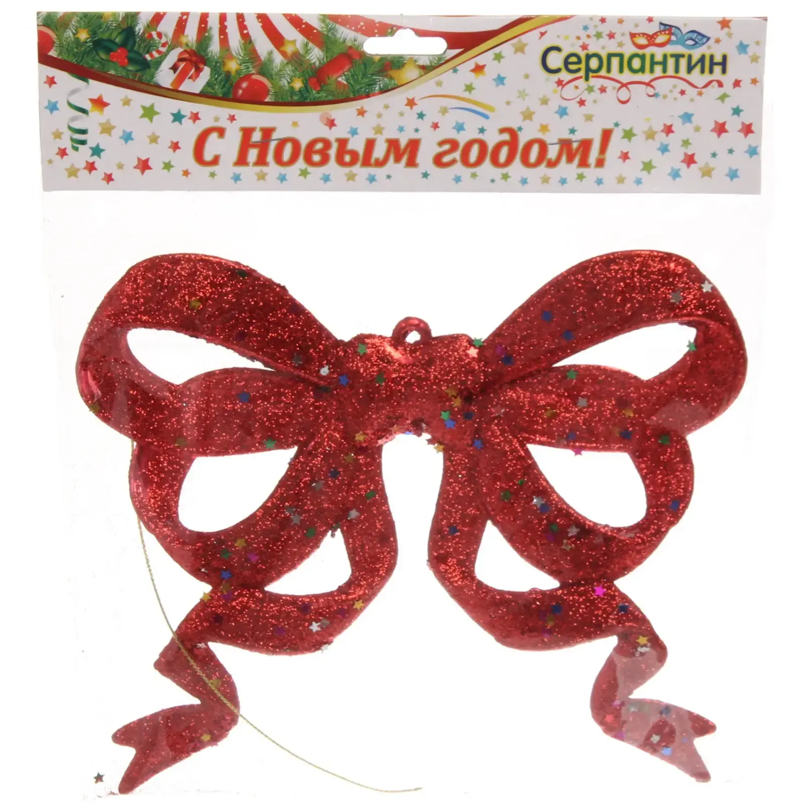 Бант новогодний "Сияющий" 17*18см, красный, с блестками и звездами