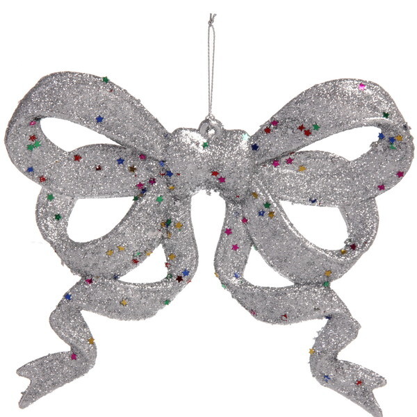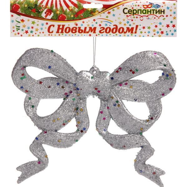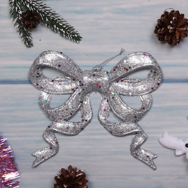 Украшение новогоднее «Бант сияющий» 17×18 см, серебристый с разноцветными блёстками, пластик, петелька для подвешивания