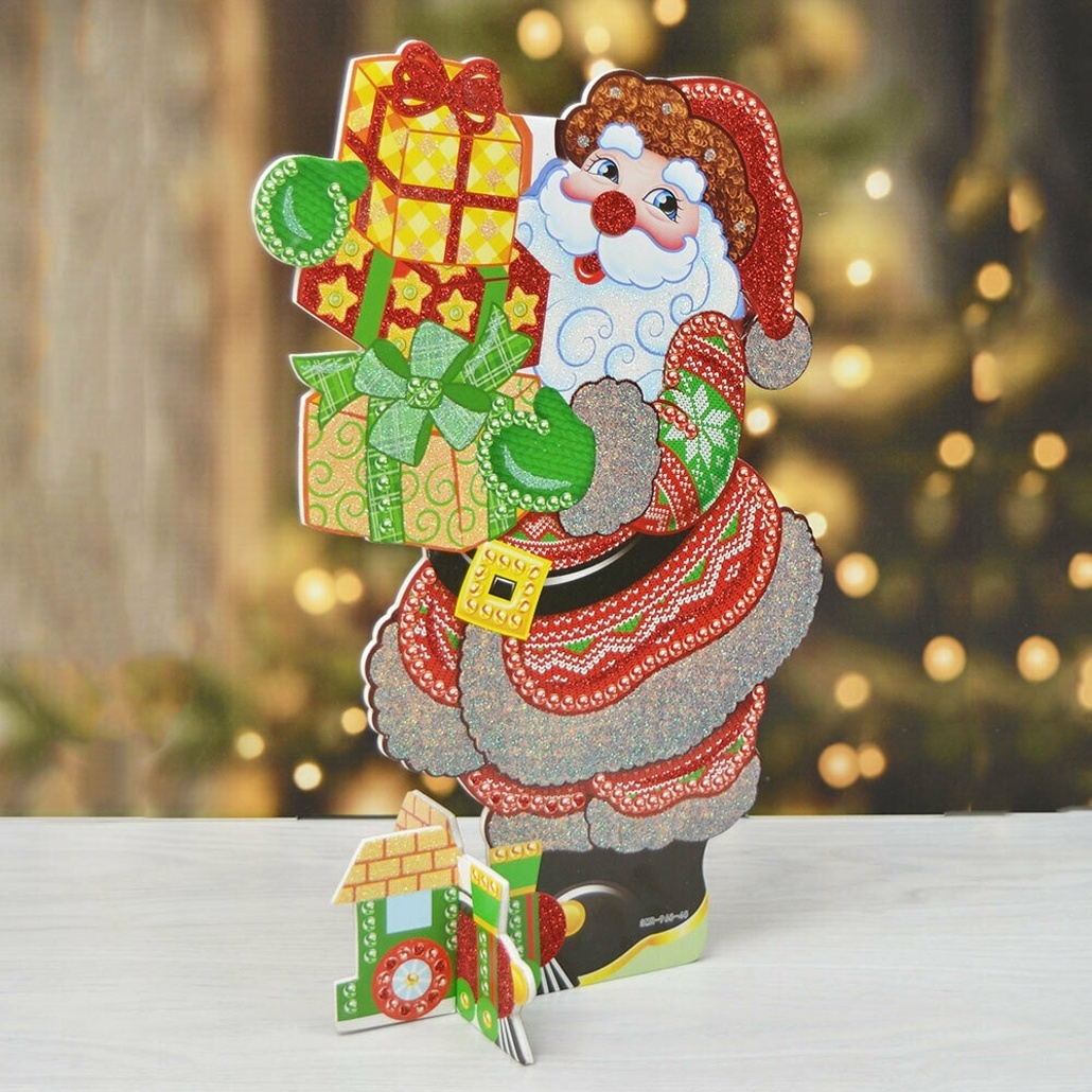 Новогоднее украшение в виде Деда Мороза с подарками станет ярким акцентом вашего праздничного декора и подарит тепло уюта всей семье.