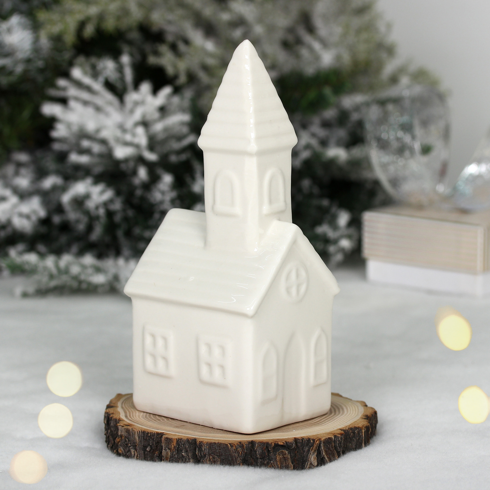 Новогоднее украшение "Белоснежная часовня" 8.5*7.5*20см, белый, керамика