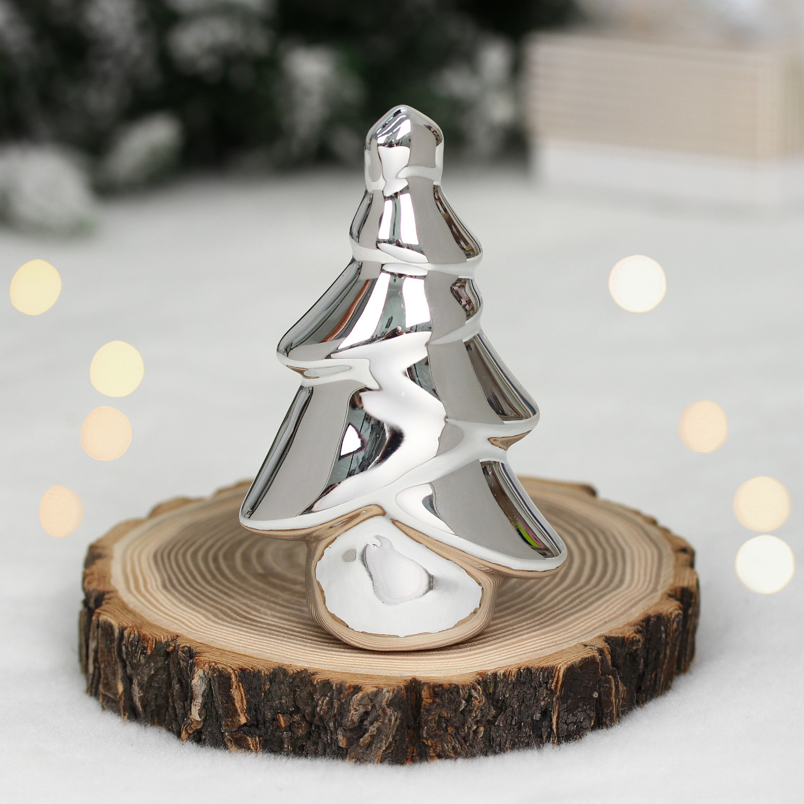 Создайте атмосферу праздника в своем доме с элегантной декоративной елочкой из керамики. Благородный серебристый цвет и глянцевая поверхность притягивают взгляды и наполняют пространство особенным шармом.