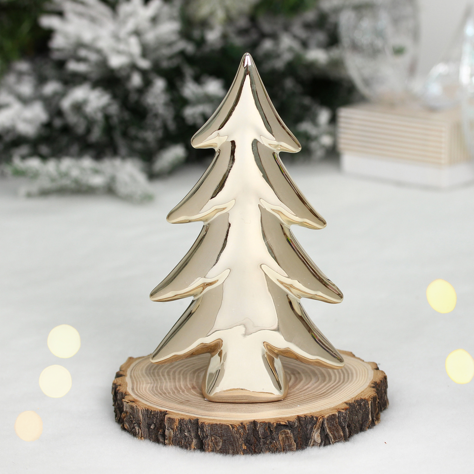 Новогоднее украшение "Шикарная елка" станет изысканным дополнением вашего праздничного декора. Его элегантный золотой цвет и благородный блеск керамики привнесут в интерьер особое ощущение роскоши и уюта.