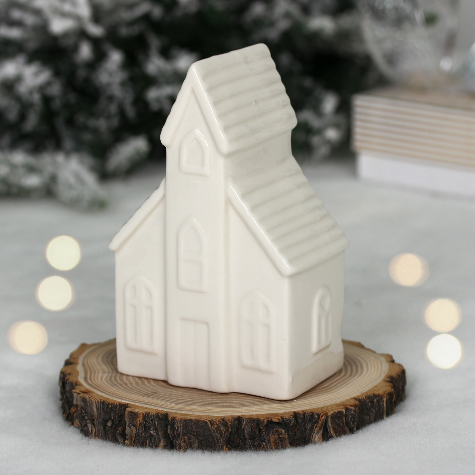 Новогоднее украшение "Зимний домик", 8.5*5*13 см, керамика, белый