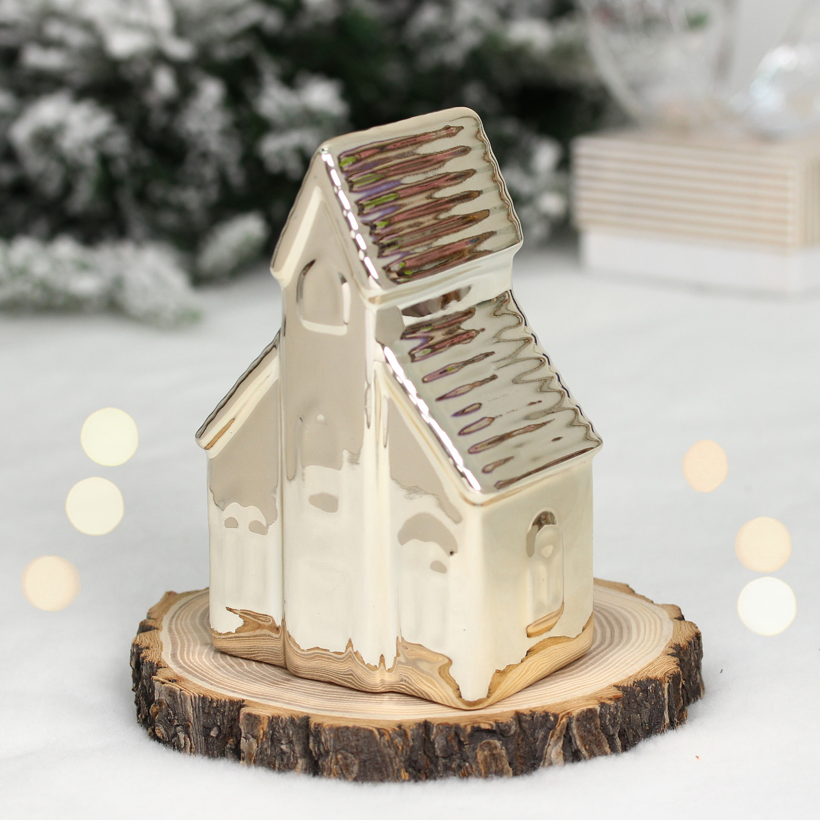 Украшение новогоднее «Зимний домик» 8.5×5×13 см, керамика, цвет золото