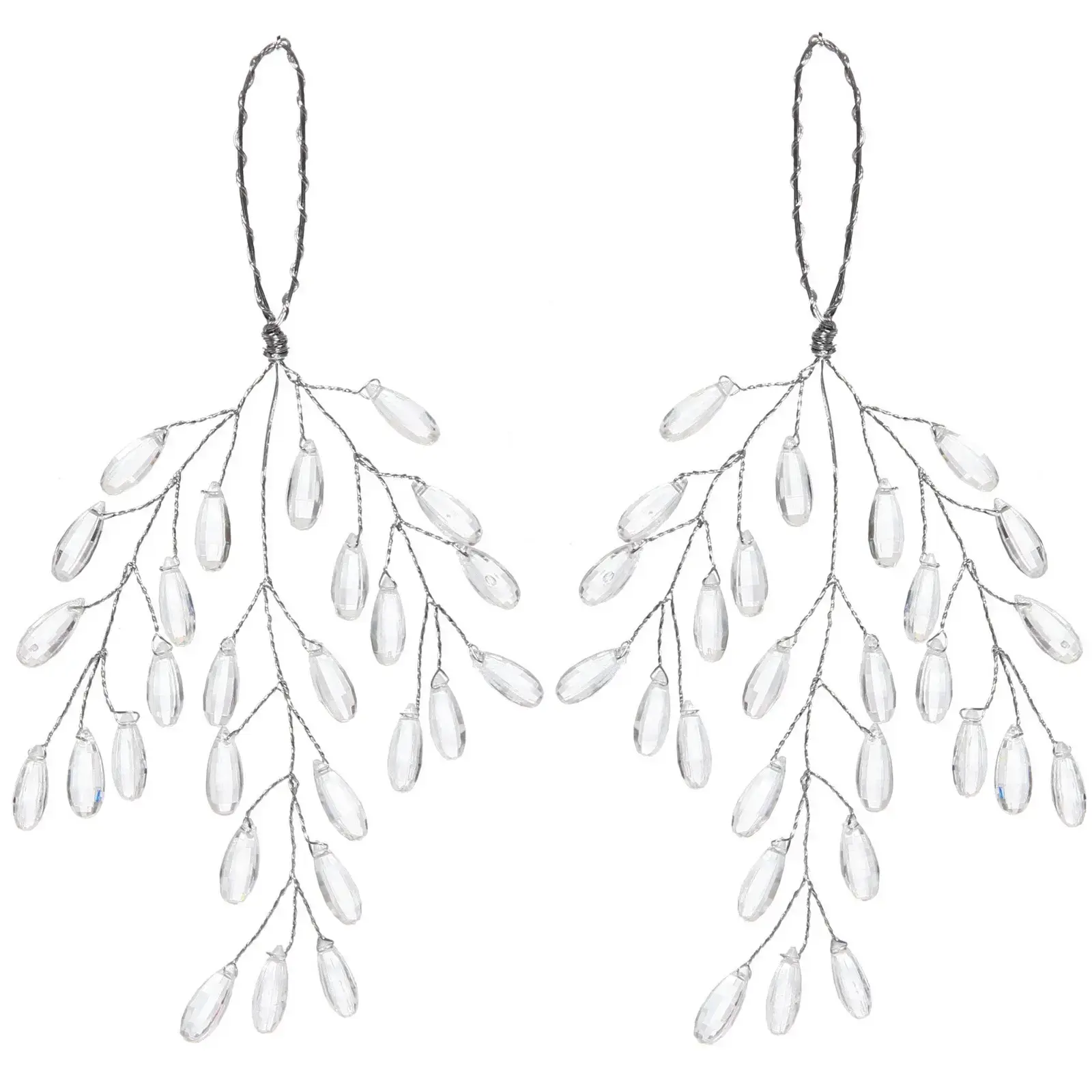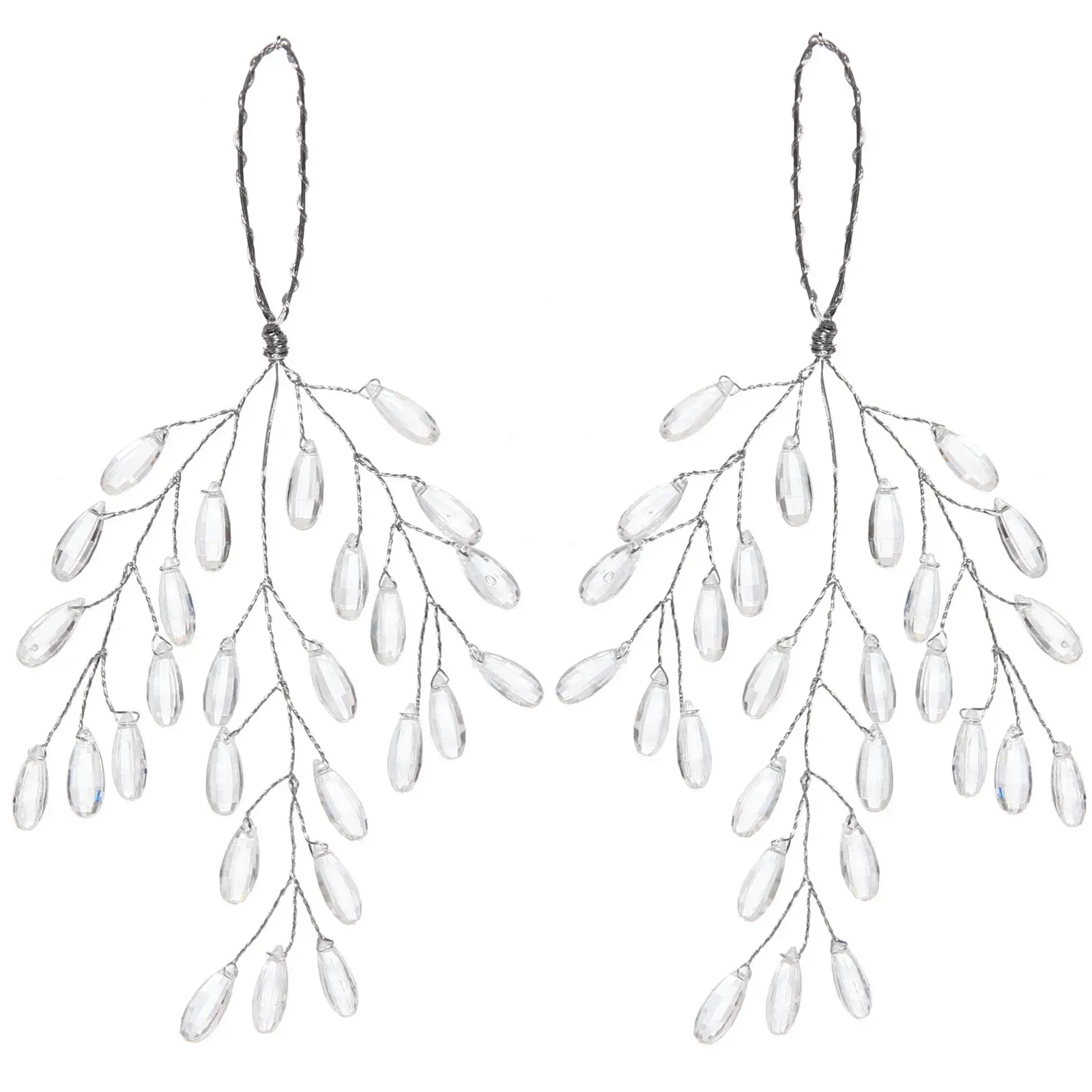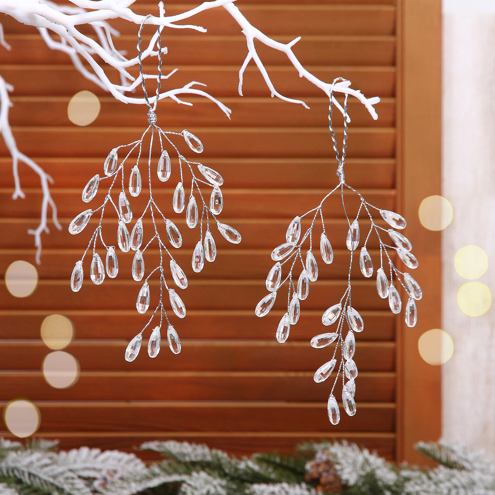 Украшение новогоднее «хрустальная нега» 20 см, набор 2 шт, прозрачные веточки, кристальные капли, лаконичный стиль
