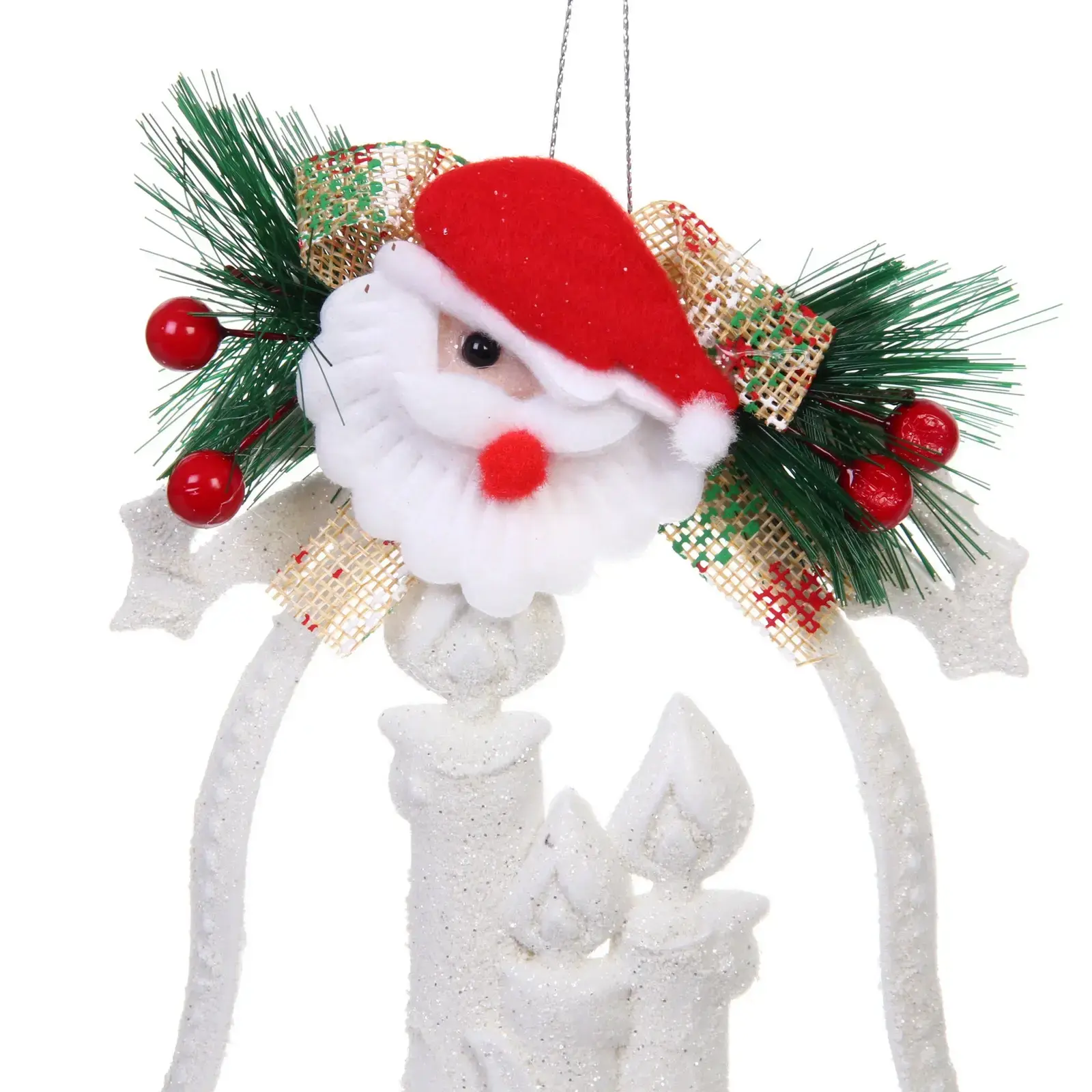 Размеры украшения составляют 17х14 см, что делает его компактным и удобным для размещения. Белый цвет и блестящая отделка придают ему элегантный вид, а использование качественных материалов гарантирует долговечность. Это украшение станет отличным подарком для ваших близких или прекрасным дополнением к вашему собственному новогоднему декору.
