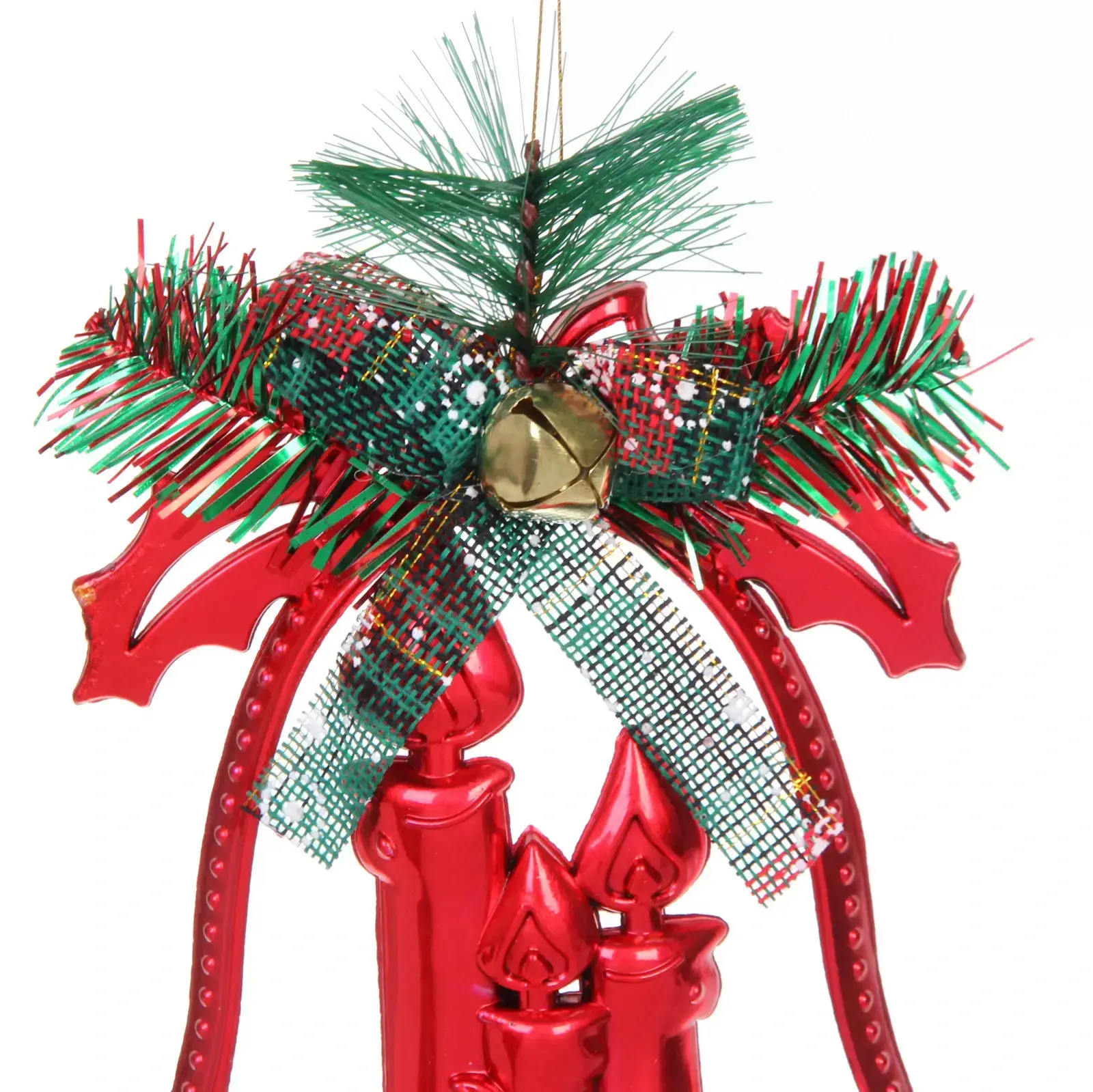 Основное преимущество этого украшения — его уникальный дизайн. Красный колокольчик с двумя свечами создает ощущение тепла и уюта. Декор из искусственных еловых веток и золотого колокольчика добавляет изысканности и праздничного настроения. Кроме того, материал изготовления — пластик — обеспечивает долговечность и легкость в уходе.