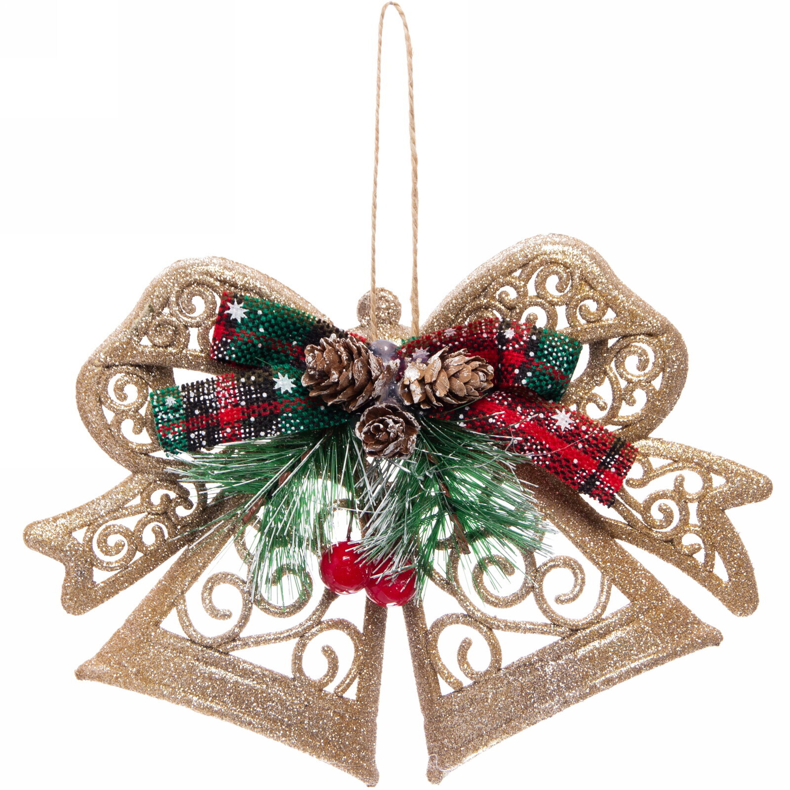 Выбирая это украшение, вы получаете не только красивый элемент декора, но и качественный продукт, который прослужит вам долго. Изготовленное из легкого пластика, оно не утяжеляет ваши новогодние композиции и легко переносит любые погодные условия. Золотистый цвет с блестками придаст вашему интерьеру праздничный вид, а красный бантик добавит яркости и стиля.