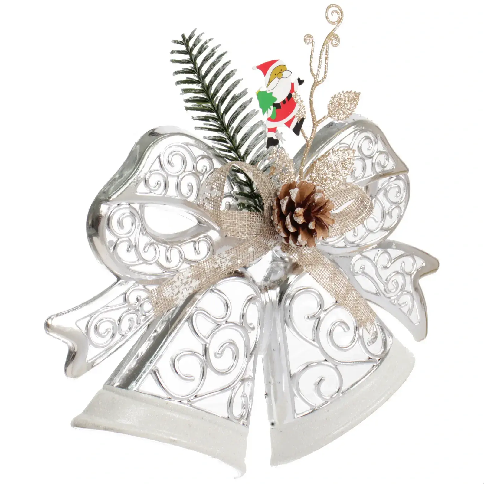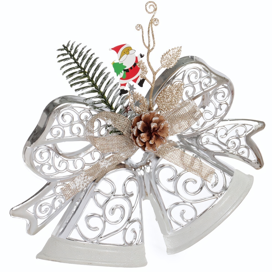 Создайте волшебную атмосферу праздника с новогодним украшением «Лесная сказка». Это декоративное изделие, выполненное в серебристом цвете, станет ярким акцентом в вашем интерьере. Колокольчики, оформленные в виде ангела, привнесут в ваш дом уют и радость, создавая незабываемую атмосферу для встречи Нового года и Рождества.