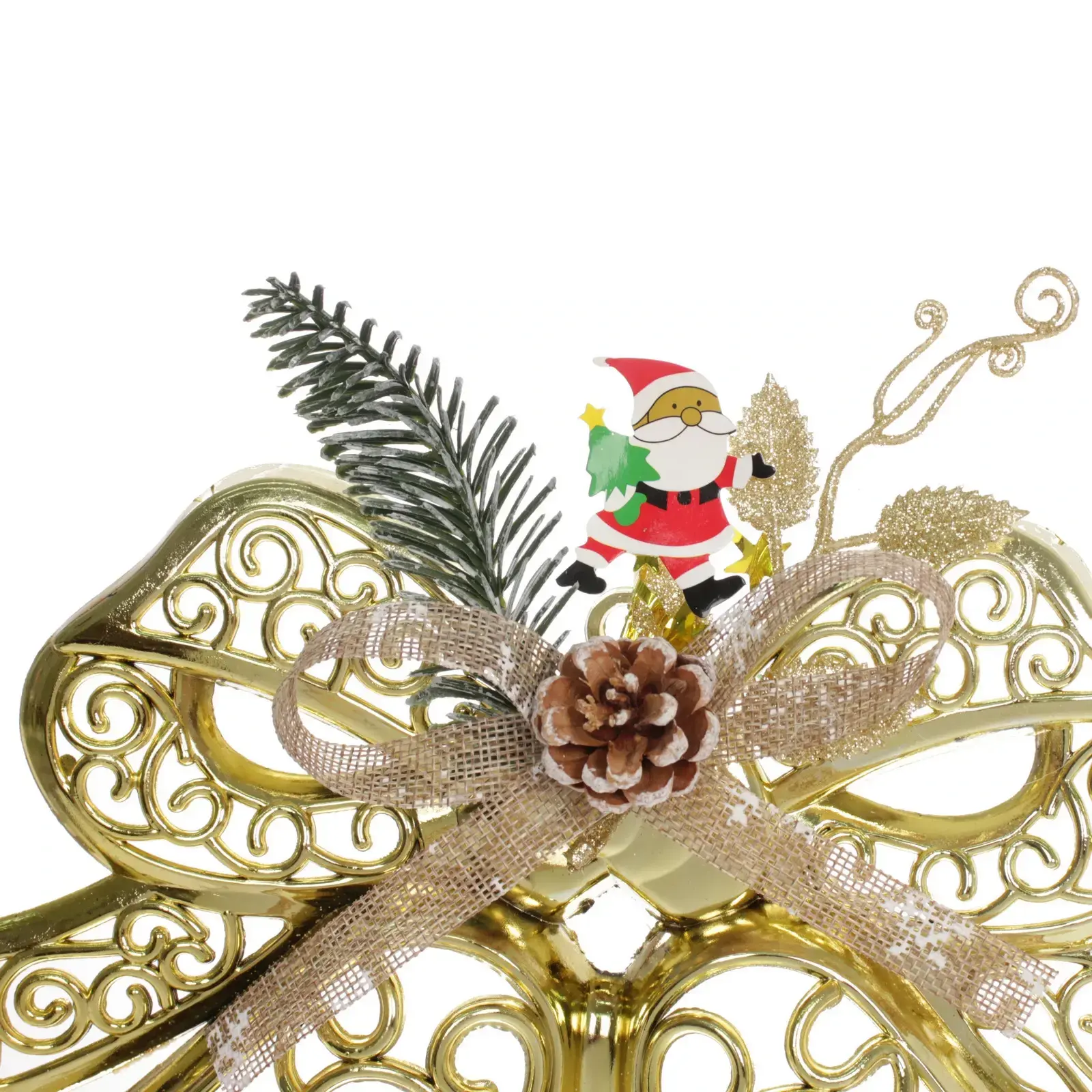 Это украшение выделяется своим качеством и вниманием к деталям. Изготовлено из прочного пластика, оно не потеряет своего вида даже после многократного использования. Золотистый цвет и блестящие элементы привлекают внимание и создают праздничное настроение. Кроме того, оно легко комбинируется с другими украшениями, позволяя вам создать уникальный стиль.