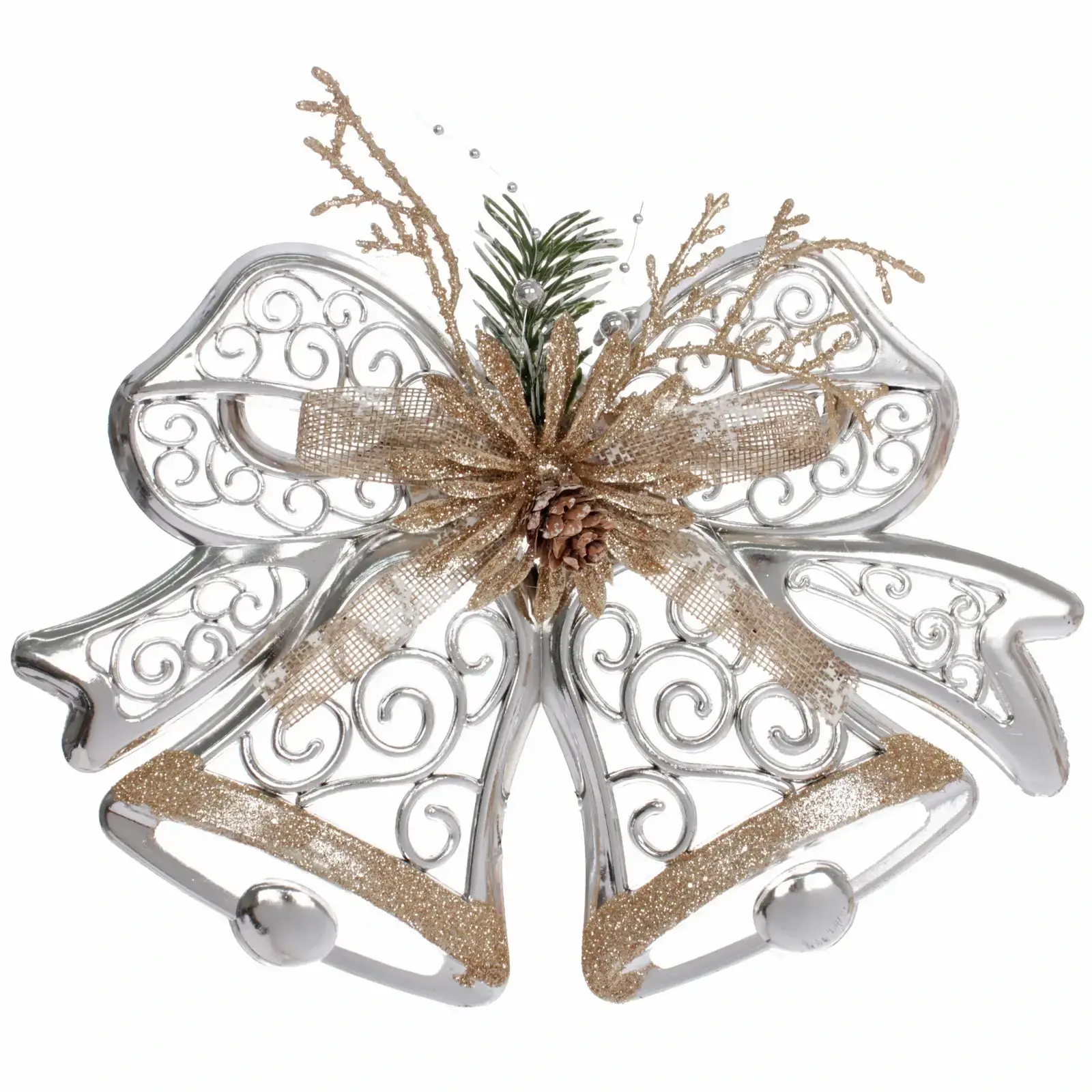 Почему стоит выбрать именно это украшение? Во-первых, его уникальный дизайн с двумя колокольчиками и золотистыми элементами делает его настоящим произведением искусства. Во-вторых, высококачественные материалы, такие как пластик и текстиль, обеспечивают долговечность и надежность. Вы можете быть уверены, что это украшение прослужит вам не один год, радуя глаз и создавая атмосферу праздника.