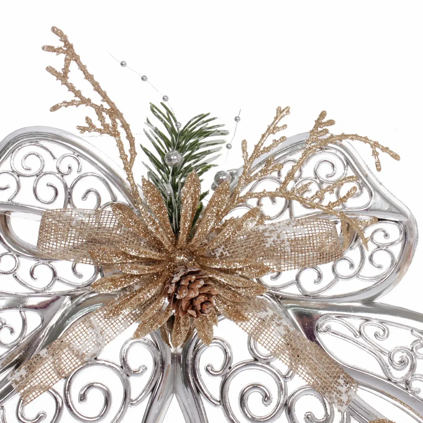 Размеры украшения составляют 27х20 см, что делает его достаточно заметным, но не слишком громоздким. Серебристый цвет с золотыми акцентами прекрасно сочетается с любыми другими цветами, что позволяет легко интегрировать его в ваш декор. Не упустите возможность сделать ваш Новый год по-настоящему волшебным с украшением «Лесное чудо»!