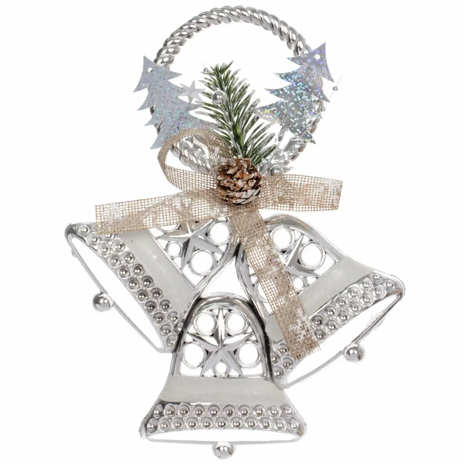 Это уникальное новогоднее украшение в виде серебристых колокольчиков станет идеальным дополнением к вашему праздничному декору. Его изысканный дизайн и блестящая отделка создадут атмосферу уюта и радости в вашем доме. Украшение выполнено из качественного пластика, что обеспечивает его долговечность и практичность в использовании.