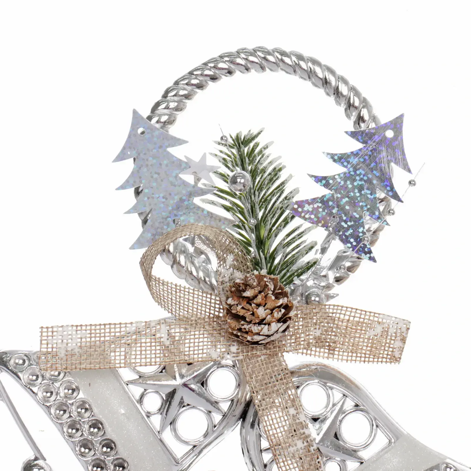 Размеры украшения составляют 25х30 см, что делает его заметным элементом декора. Серебристый цвет и блестящая отделка придают ему особую привлекательность. Это украшение станет не только красивым, но и практичным элементом вашего новогоднего праздника.