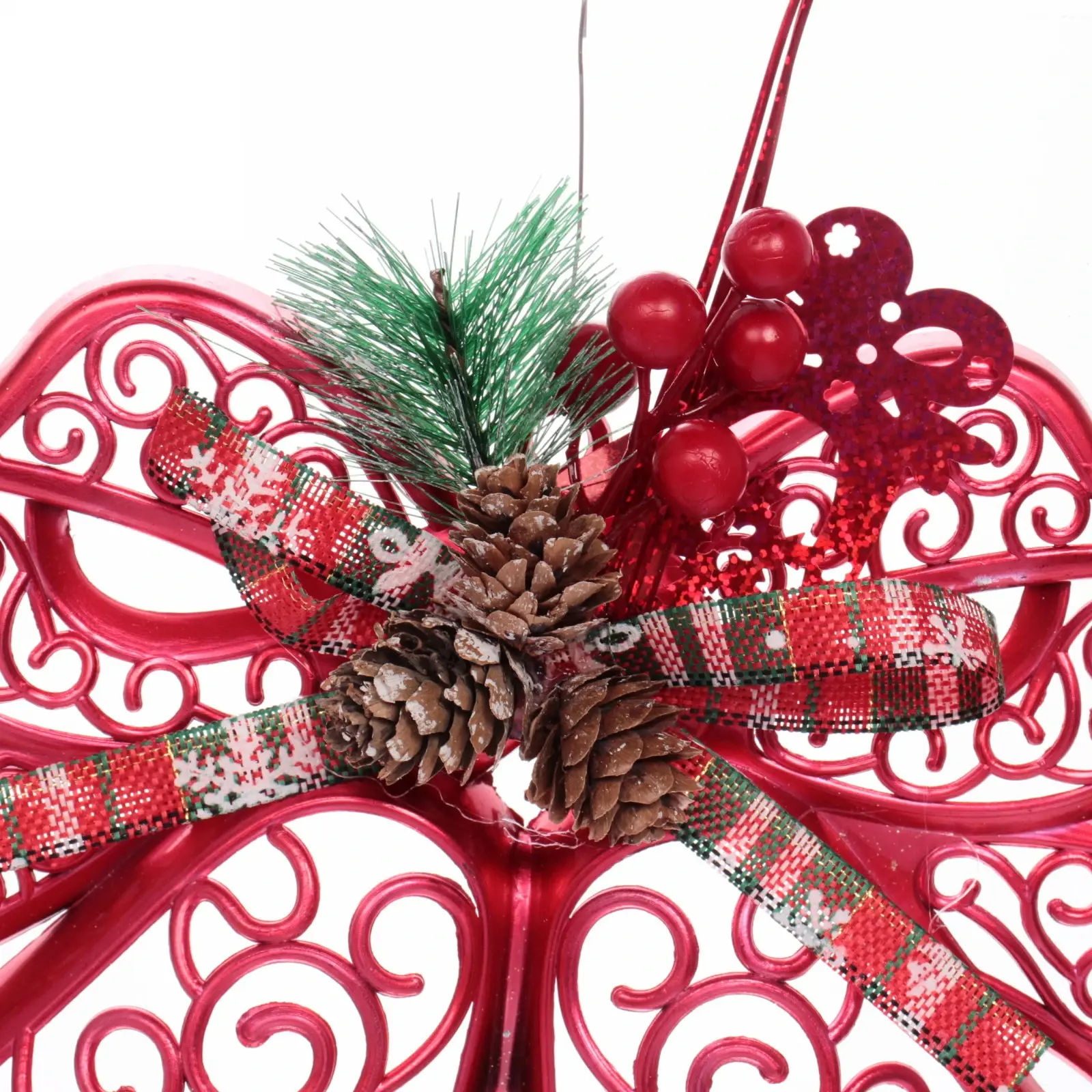 - Объемная форма и декоративные элементы, такие как шишки и искусственные ягоды, придают изделию уникальность.