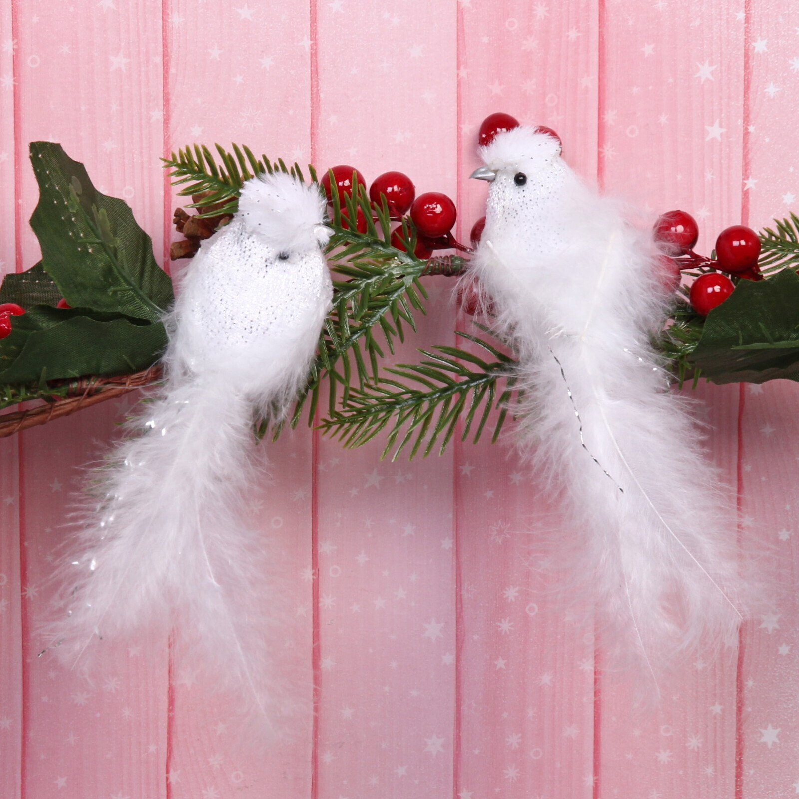 Это уникальное новогоднее украшение на зажиме станет ярким акцентом в вашем интерьере. Его белый цвет и блестящие элементы придают ему изысканный вид, который идеально впишется в любое праздничное оформление. Птицы, выполненные из качественного пластика и текстиля, создают ощущение легкости и свежести, что делает их идеальными для новогодних праздников.