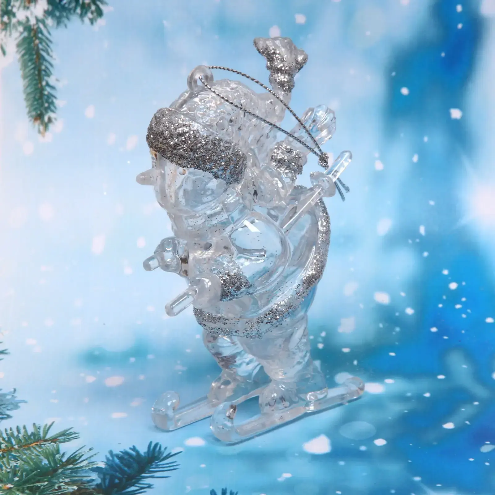 Это подвесное новогоднее украшение в виде снеговика на лыжах станет ярким акцентом в вашем праздничном декоре. Его блестящие серебристые детали и прозрачный материал создают эффект волшебства и радости, наполняя ваш дом атмосферой уюта и тепла. Снеговик с улыбающимся лицом и лыжами добавит нотку игривости и веселья в ваш интерьер.