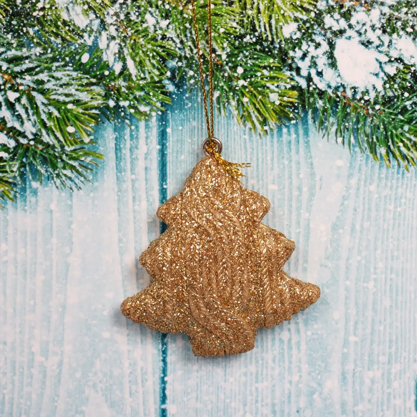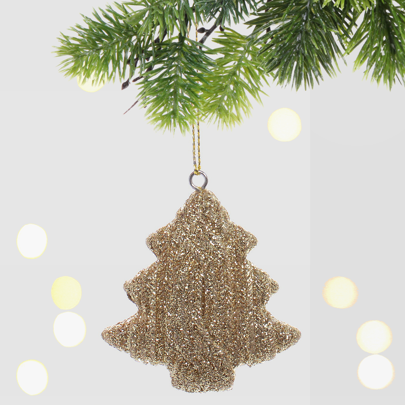 Новогодняя подвеска "Вязаная ёлочка" станет идеальным дополнением вашего праздничного интерьера. Благородный оттенок шампань и элегантный блеск создают неповторимое ощущение волшебства.