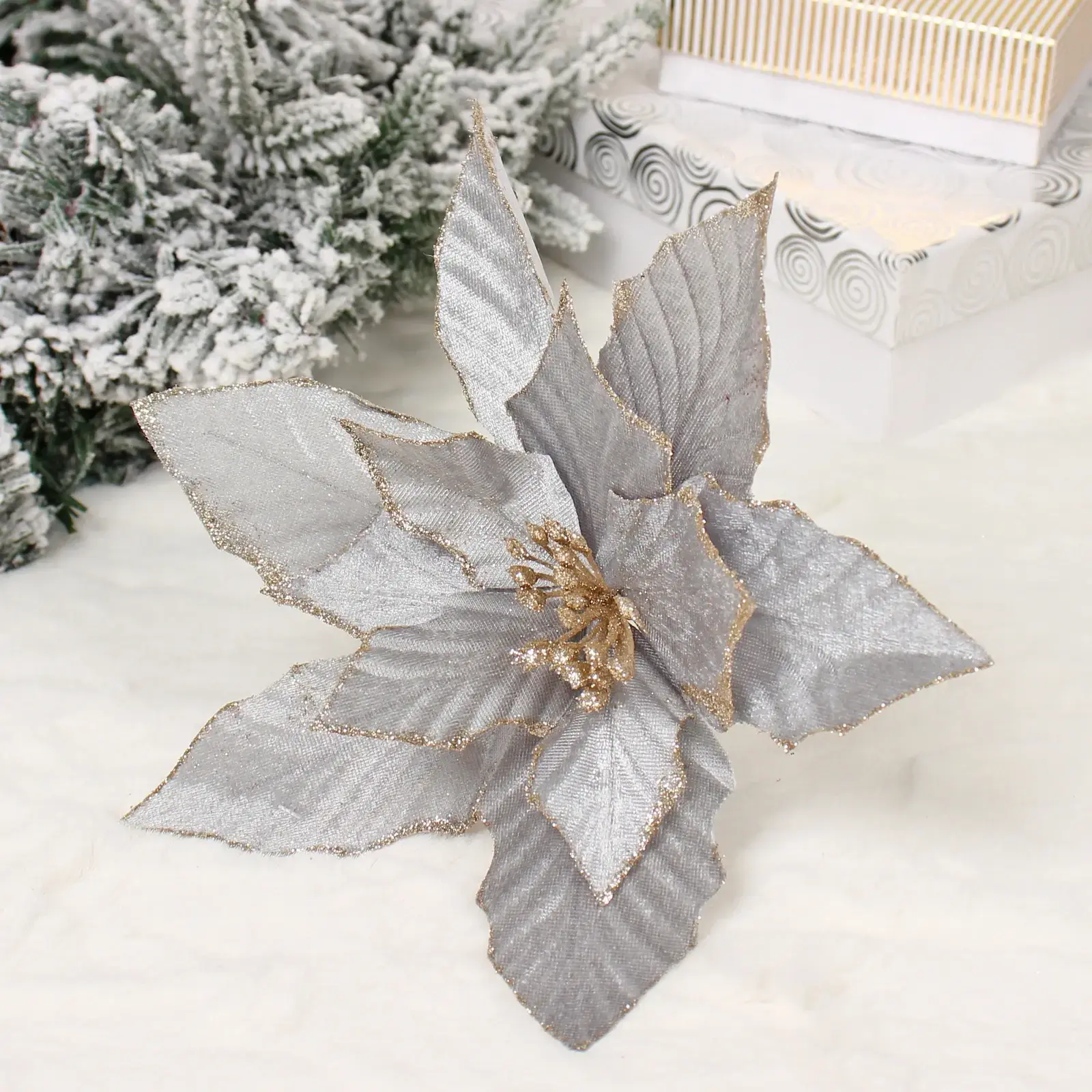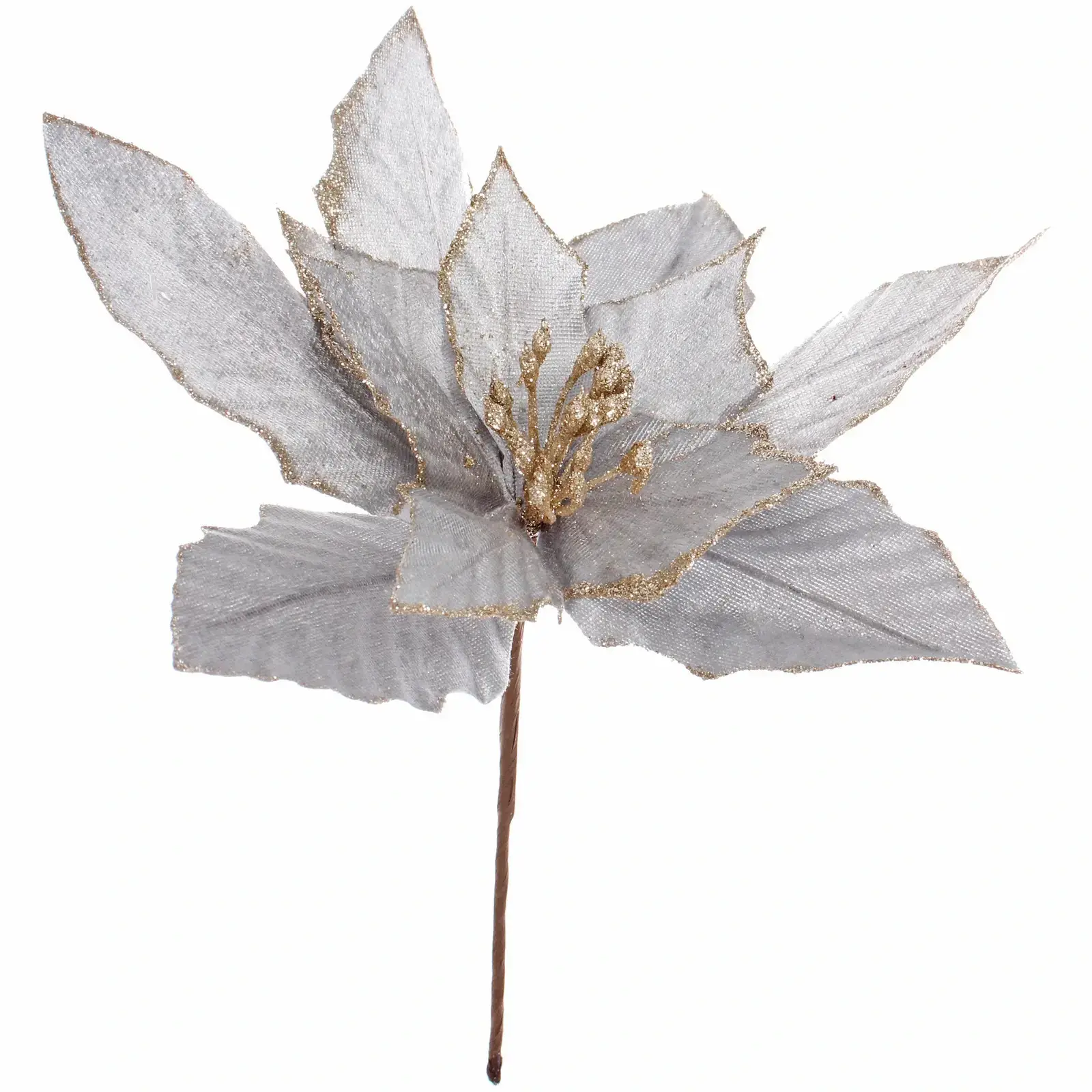 Цветок декоративный 'Пуансеттия - Фурия' 26см, серебро/золото, текстиль
