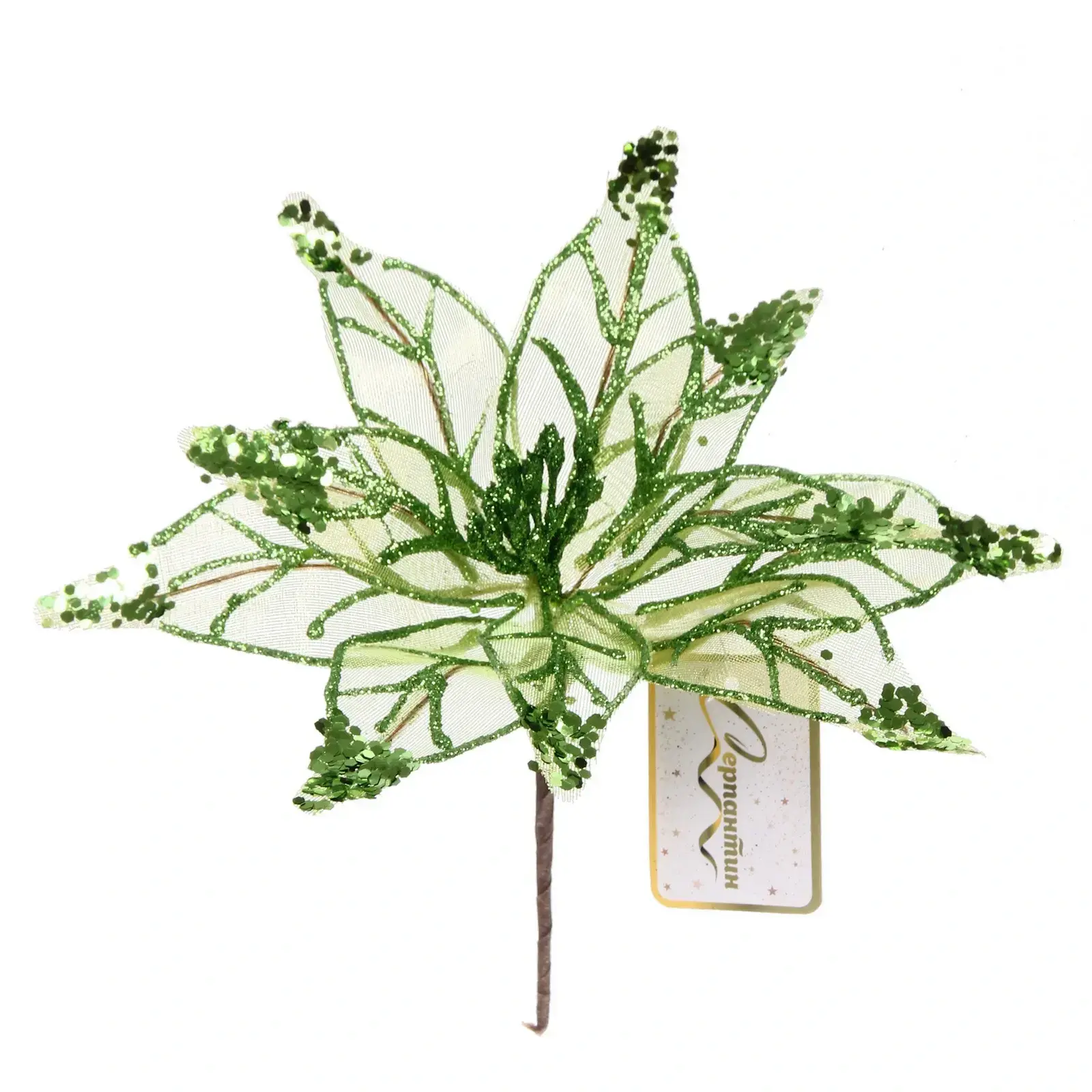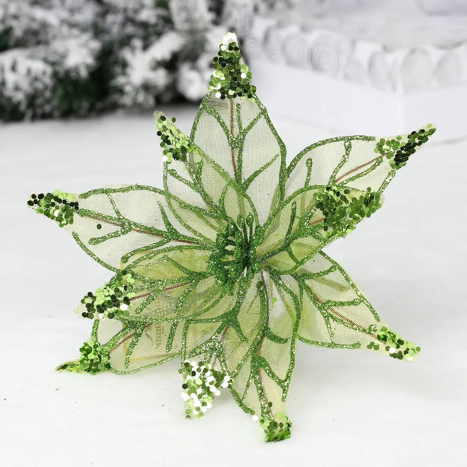 Декоративный цветок с мерцающими переливами создаст волшебную атмосферу в вашем доме. Гибкие лепестки с проволочным каркасом позволяют придать композиции любую форму для эффектного размещения на елке, праздничном столе или в интерьерном декоре.