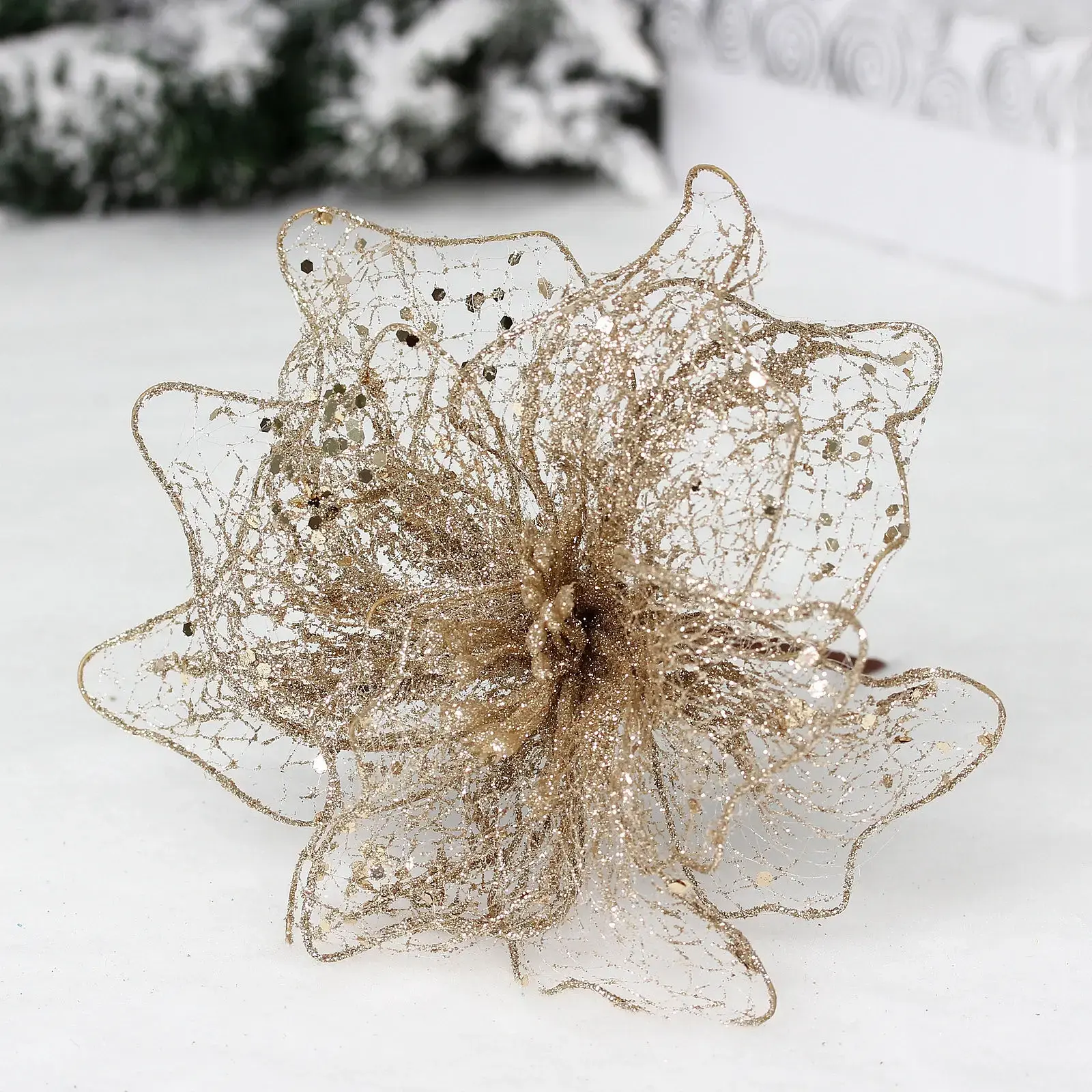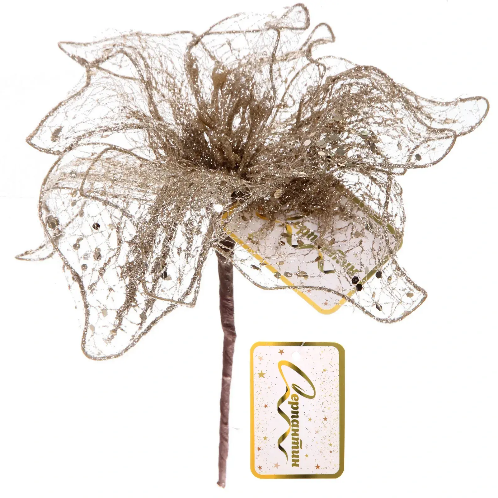 Цветок новогодний 'Пуансеттия - Лунная ночь' 26см, шампань, с блестками