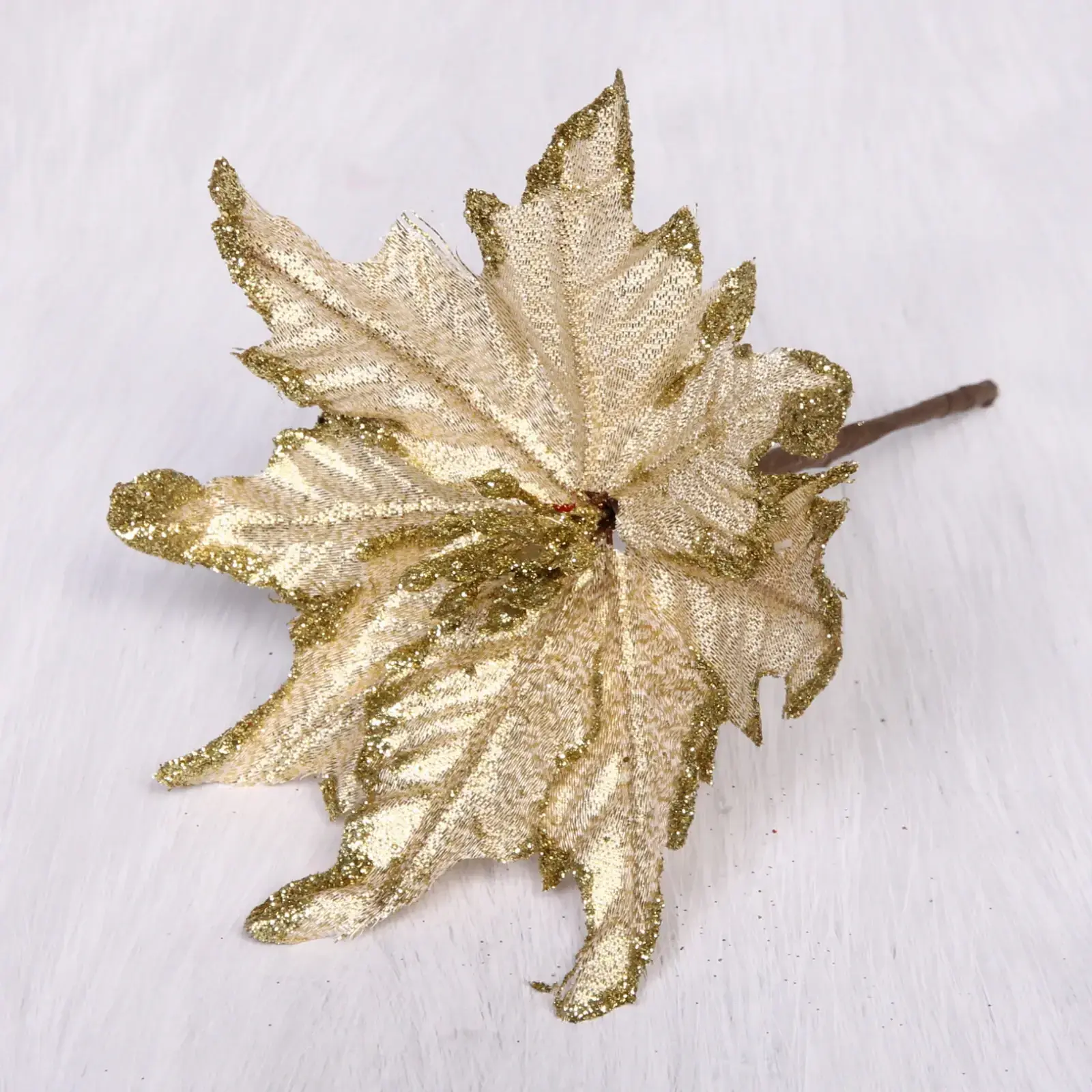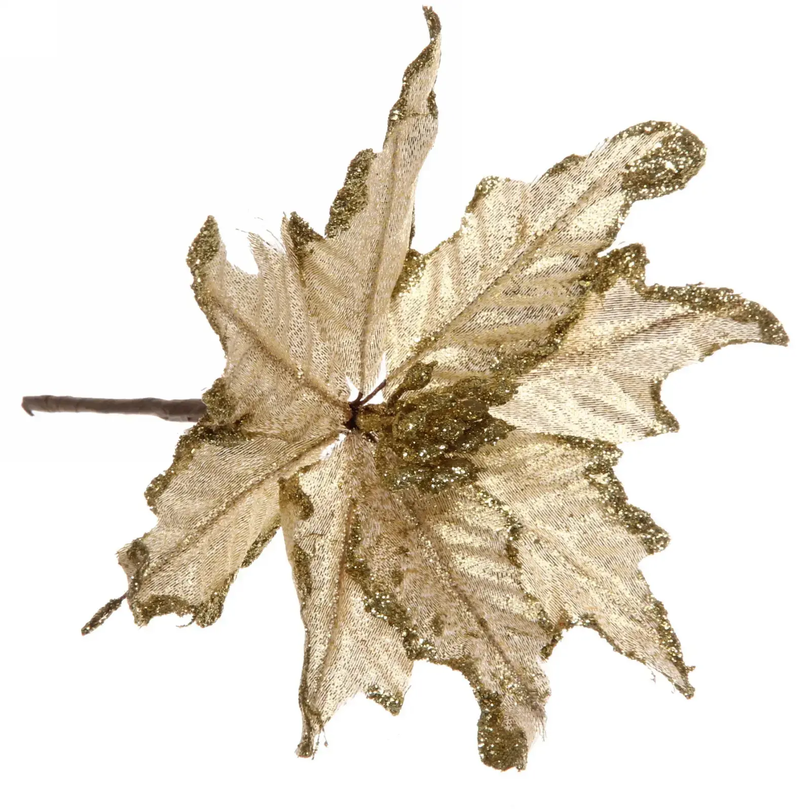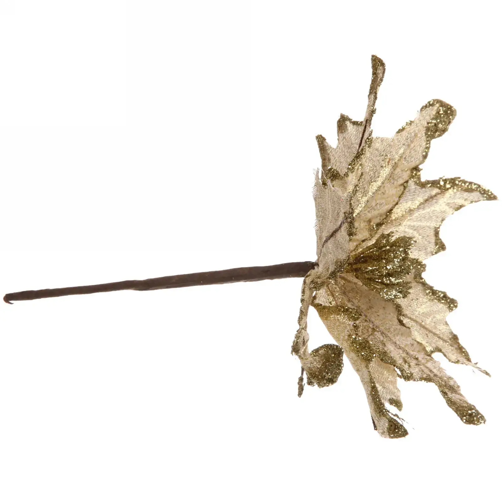 Украшение новогоднее 'Пуансеттия-Метелица' 15см, текстиль, золотистый блеск