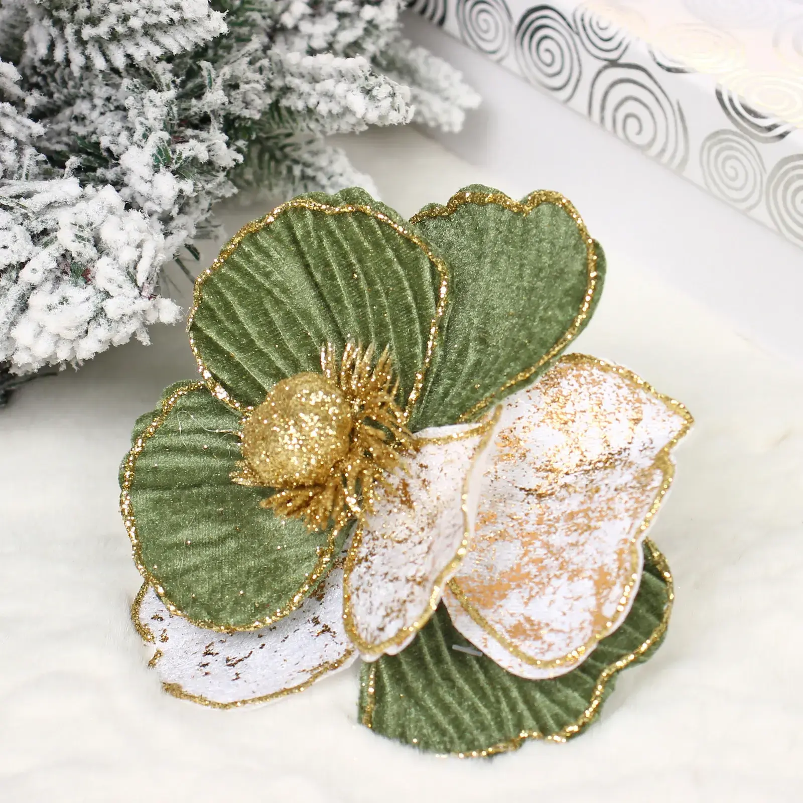 Украшение новогоднее «Пуансеттия - Нежность» 15 см, текстиль, изумруд/золото, праздничный декор